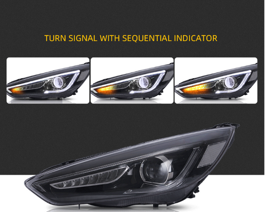 VLAND 2Pcs LED Projector Headlights For 2015-2018 Ford Focus W/Sequential Signal