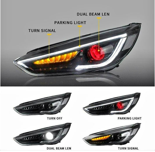 VLAND Red Demon Eyes LED Headlights for Ford Focus 2015-2018 Sequential Signals