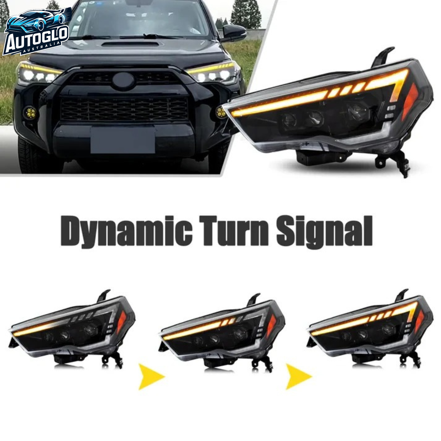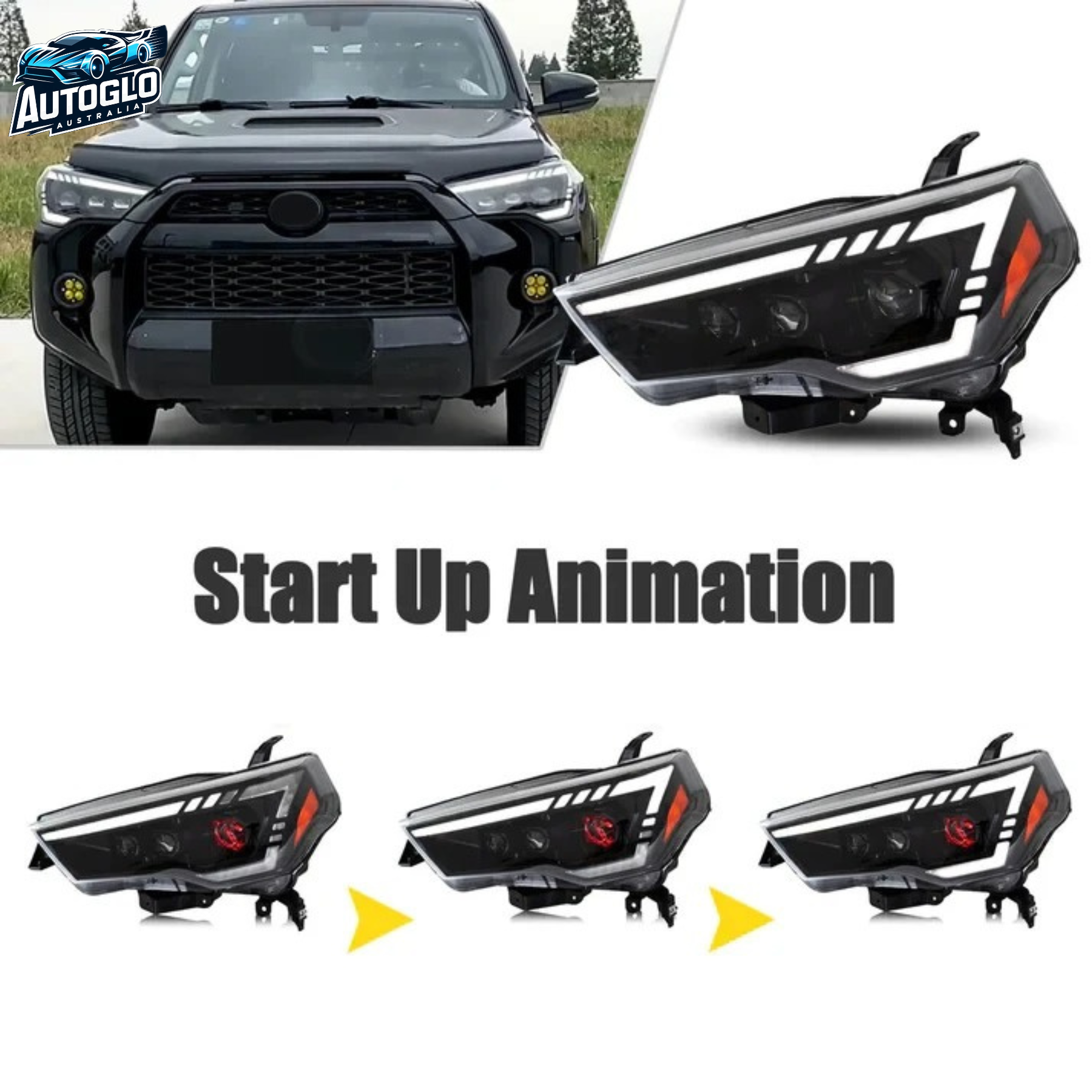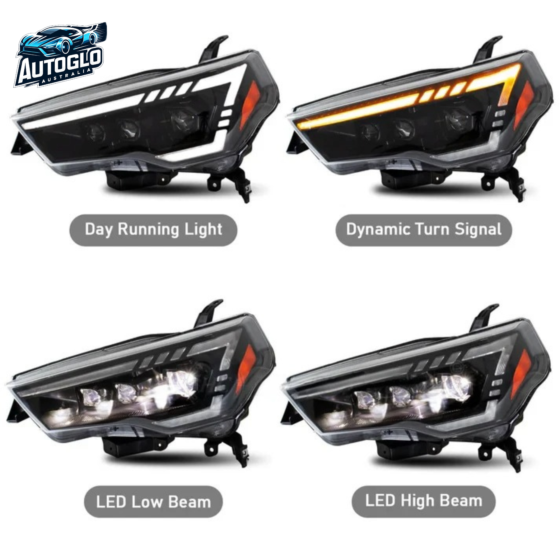 Autoglo Australia LED Headlights for Toyota 4Runner (2014–2023) SR5 / TRD Off-Road / Limited – Sequential Turn Signals | Start-Up Animation | Plug & Play