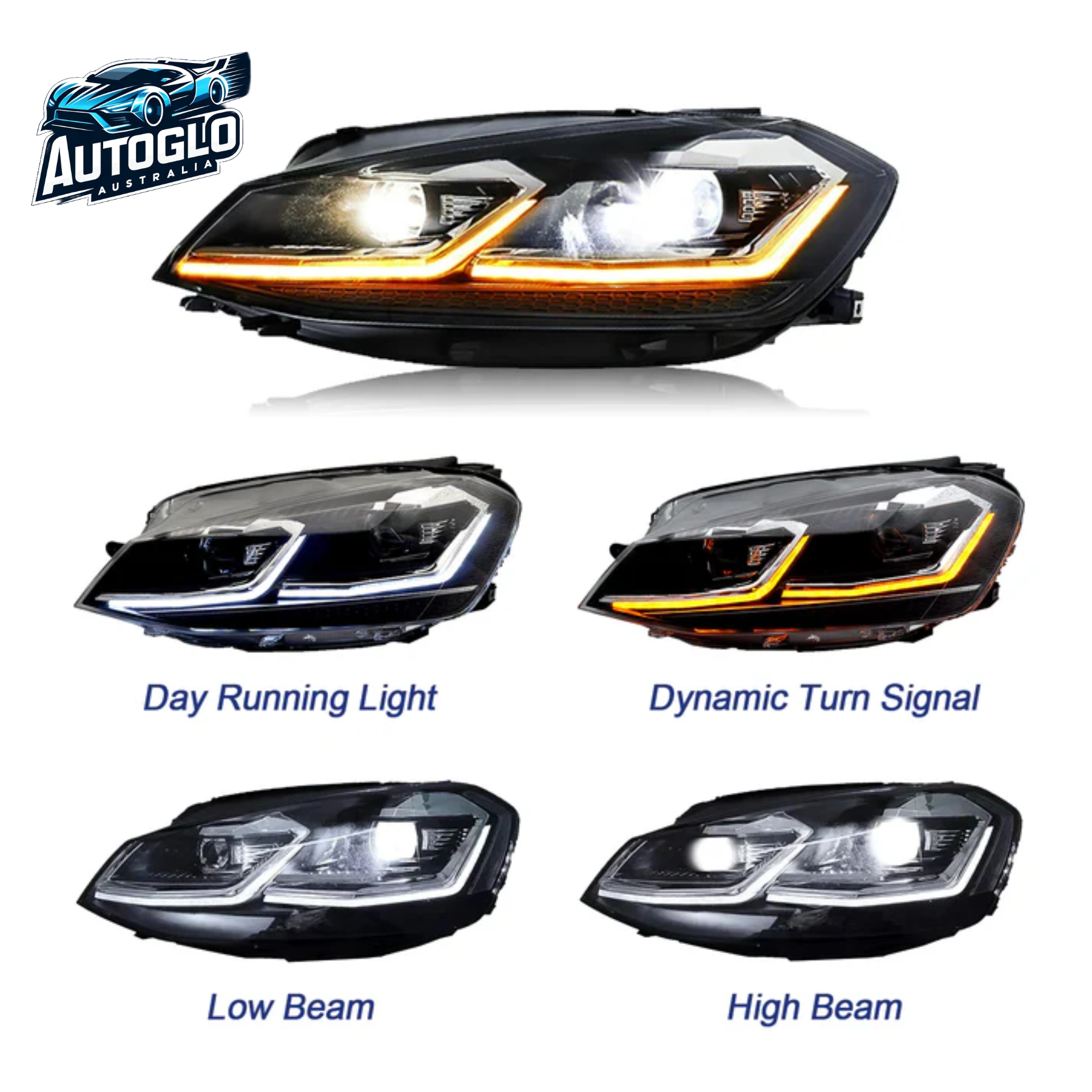 Autoglo Australia Projector LED Headlights for VW MK7 Golf 7 (2013–2018) – Start-Up Animation DRL | Sequential Turn Signals | Plug & Play