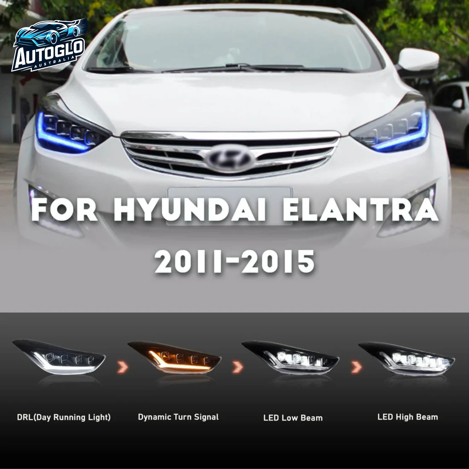 Autoglo Australia Full LED Headlights for Hyundai Elantra (2011–2015) – Start-Up Animation DRL | Sequential Turn Signals | Plug & Play