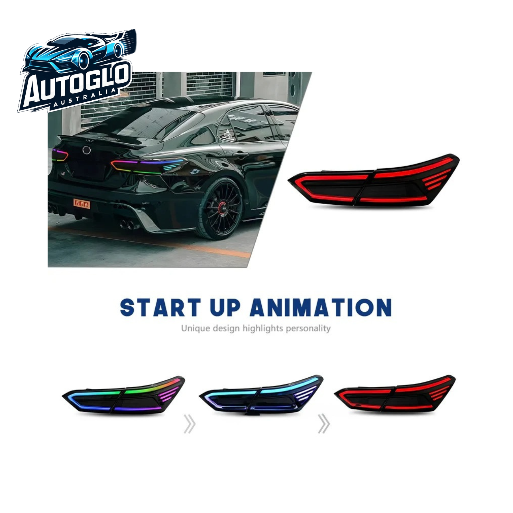 Transform your Camry’s rear profile with Autoglo Australia’s RGB LED Tail Lights—where personalization meets performance for a bold upgrade.