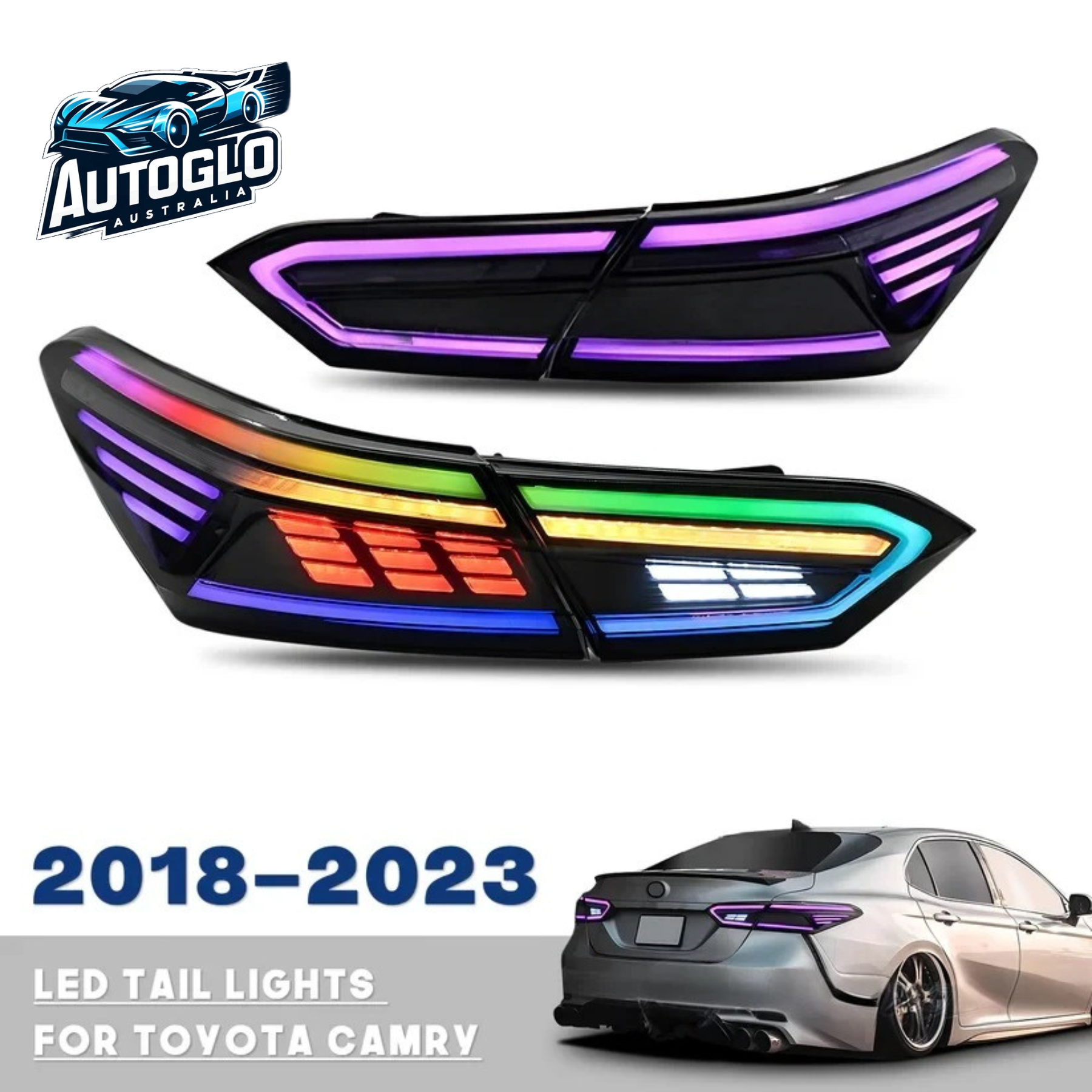 Autoglo Australia RGB LED Tail Lights for Toyota Camry (2018–2024) – RGB Color Options | OLED Design | Sequential Indicators | Plug & Play