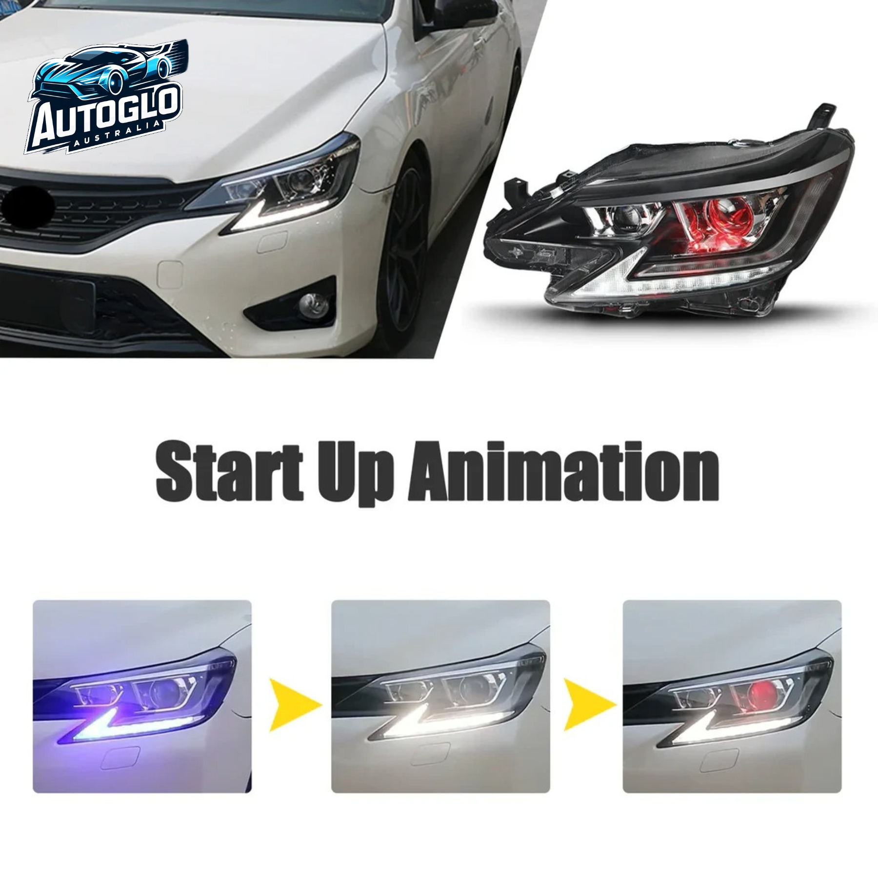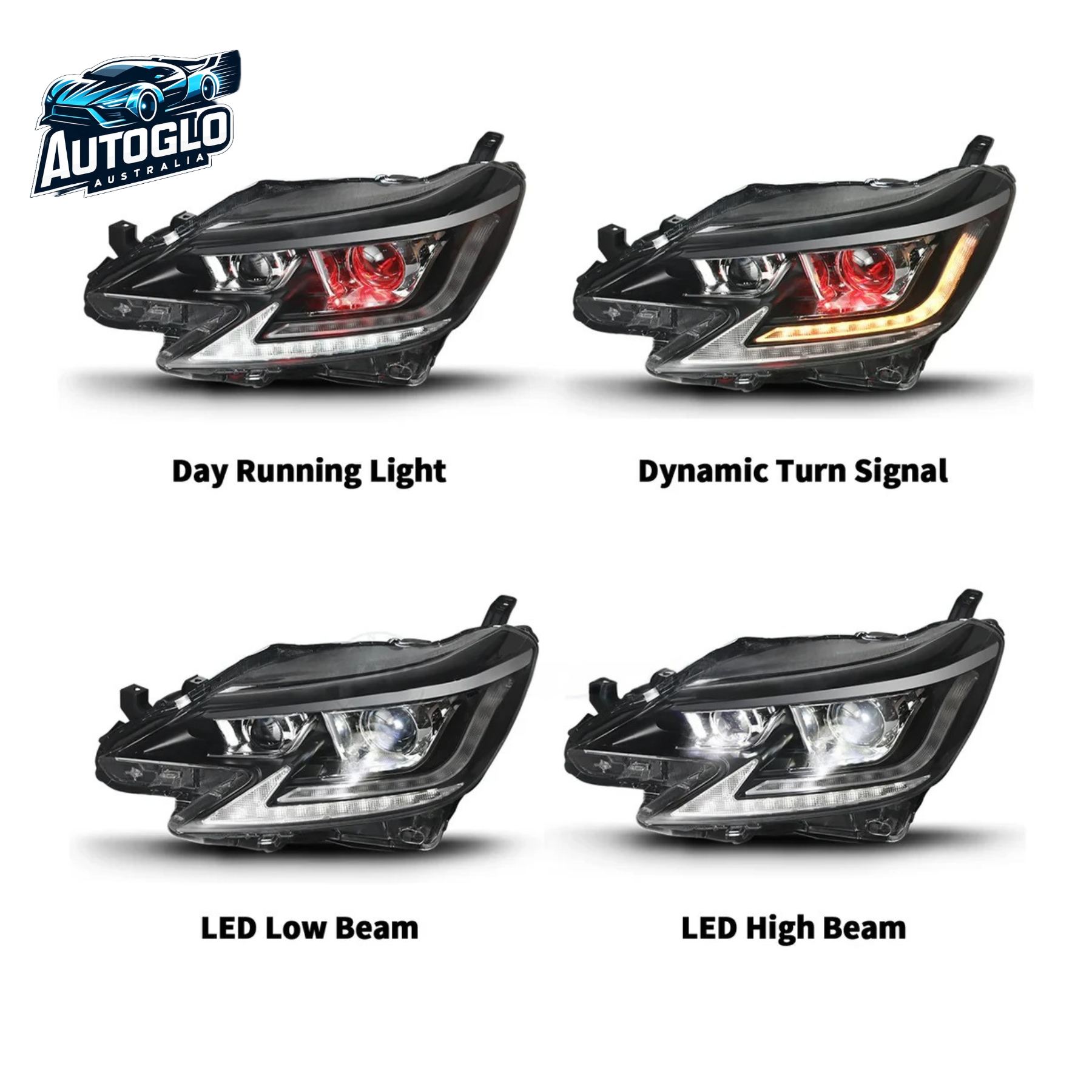 Autoglo Australia LED Headlights for Toyota Mark X / Reiz (2014–2019) – Sequential Turn Signals | Start-Up Animation | Plug & Play