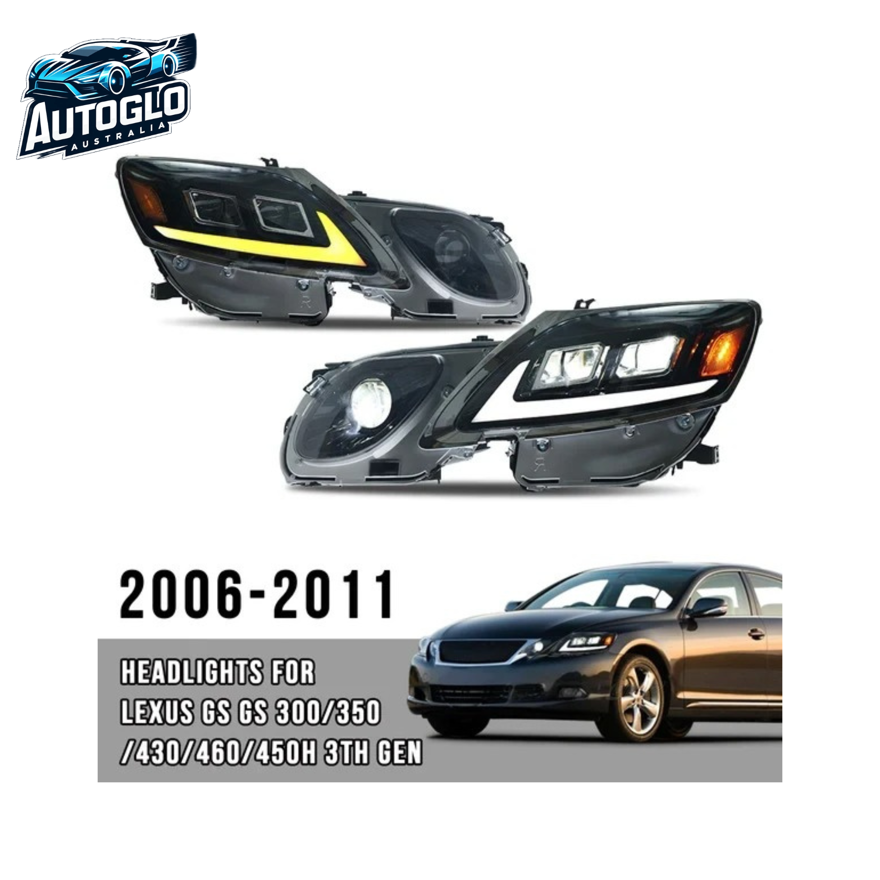 Autoglo Australia LED Headlights For Lexus Gs Gs300/350/430/460/450h 3th Gen 2006-2011