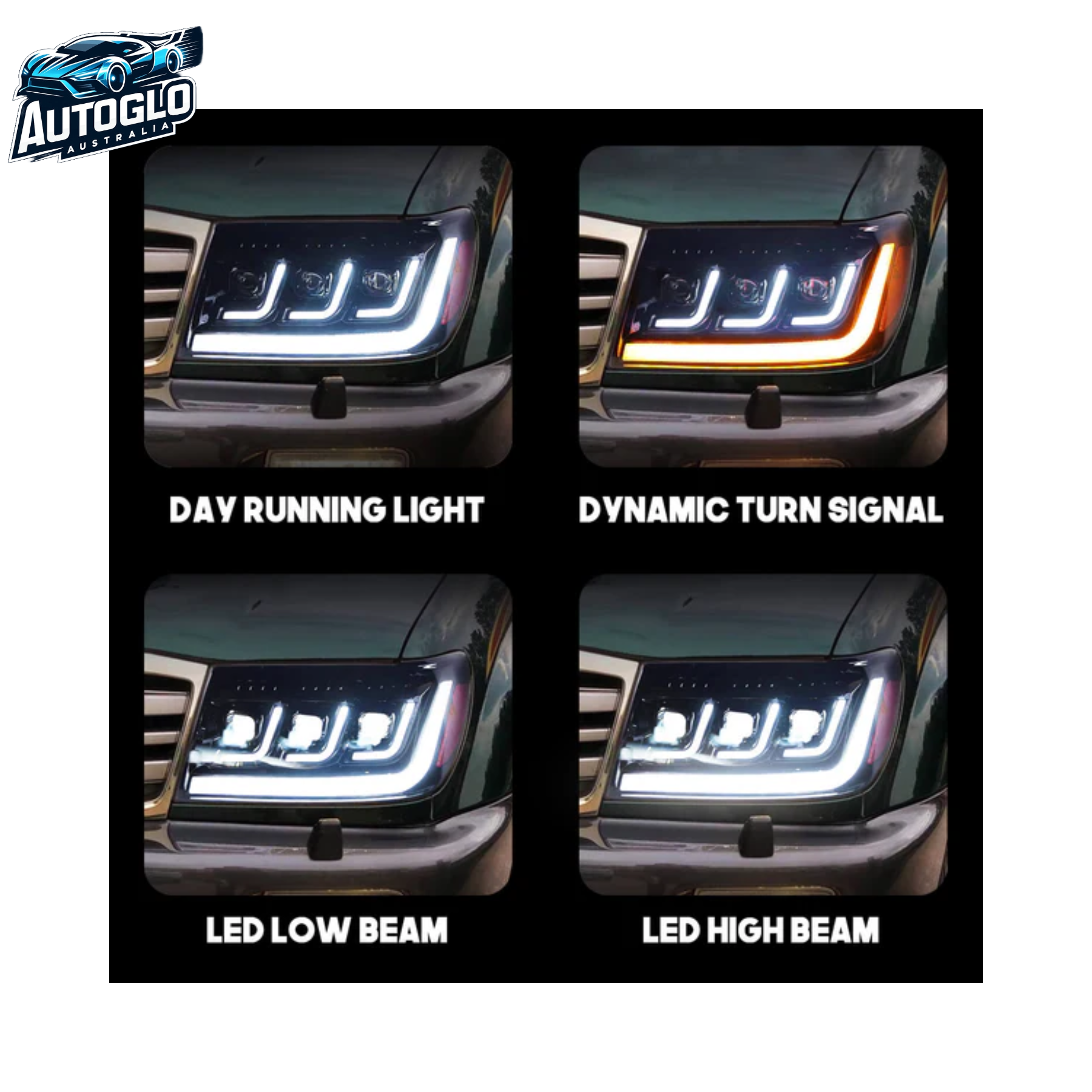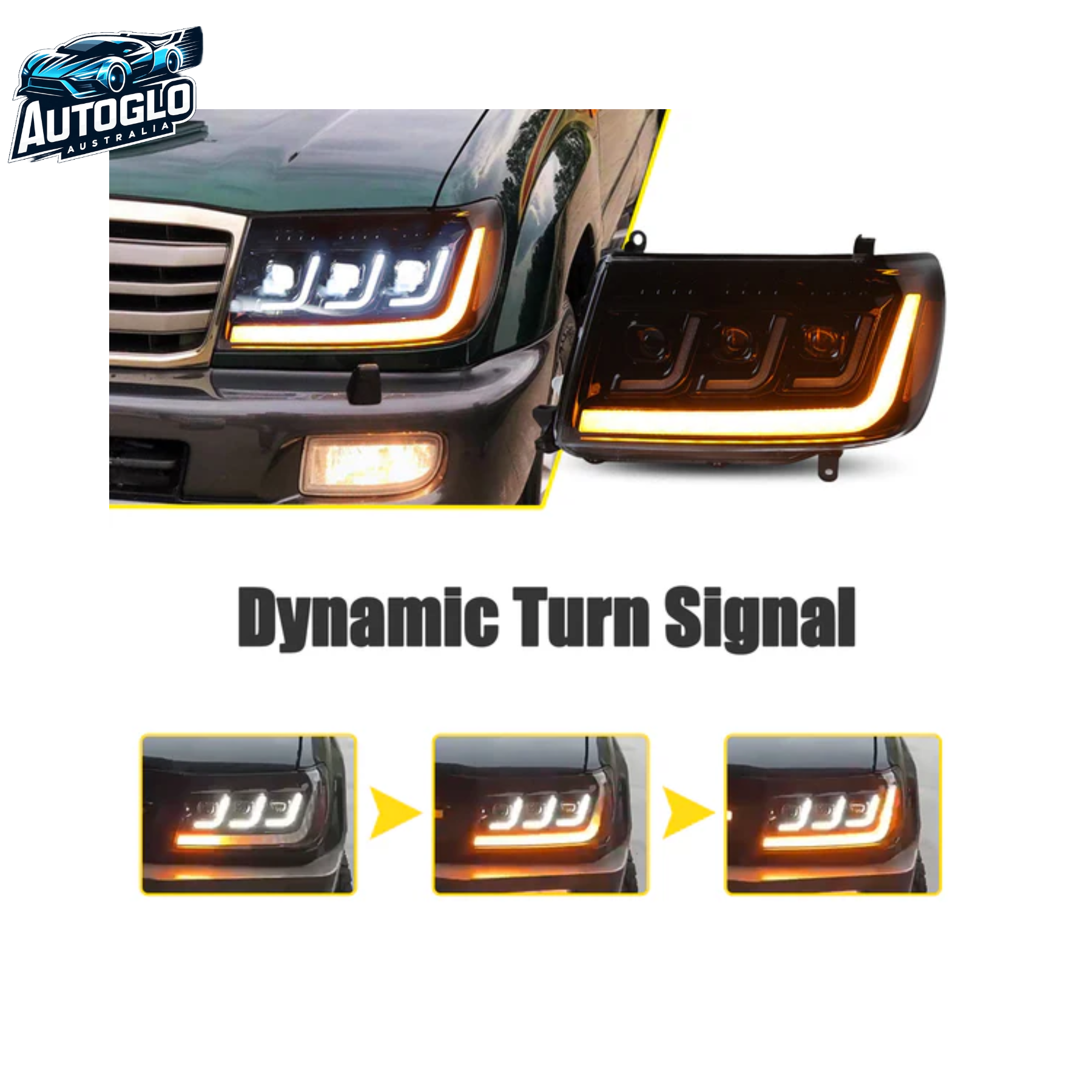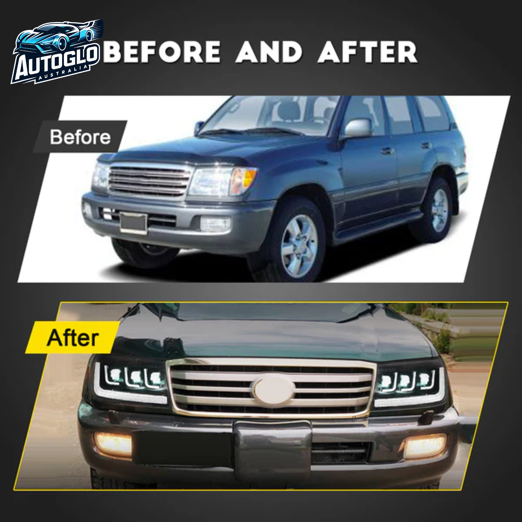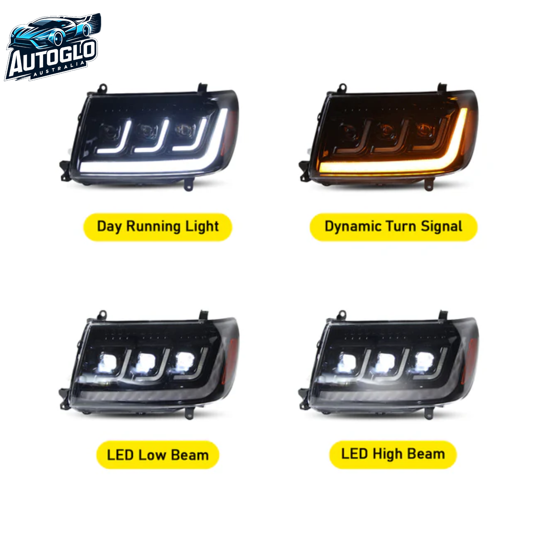 Autoglo Australia LED Headlights for Toyota Land Cruiser J100 (1998–2007) – Sequential Turn Signals | Start-Up Animation | Plug & Play