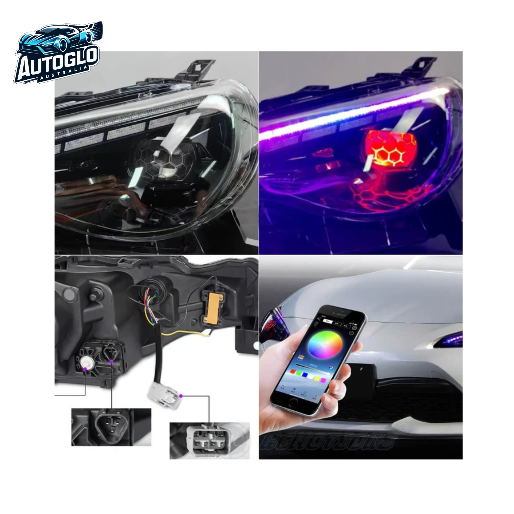 Autoglo Australia LED RGB Cellular Headlights for Subaru BRZ & Toyota 86 (2012–2021) – RGB DRL | Sequential Turn Signals | Start-Up Animation | Plug & Play