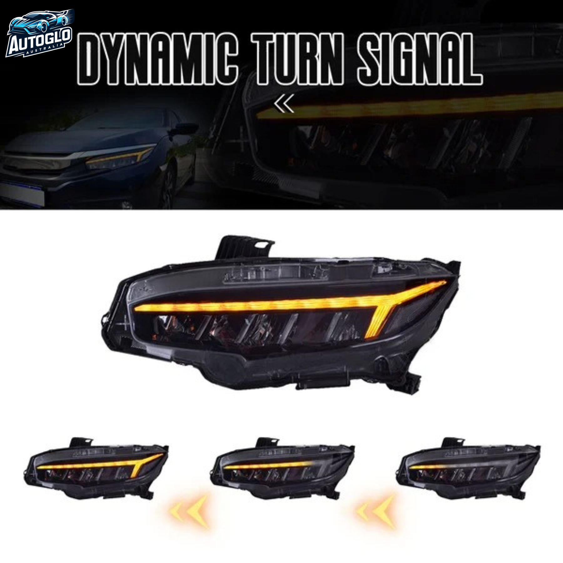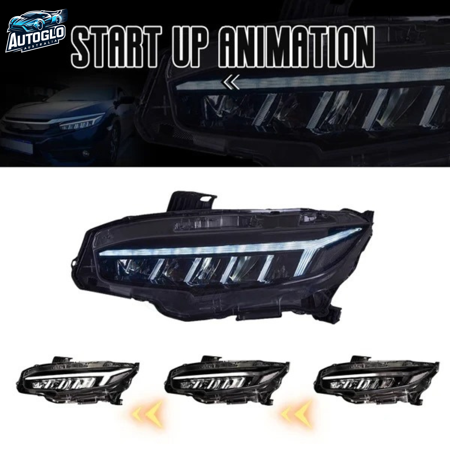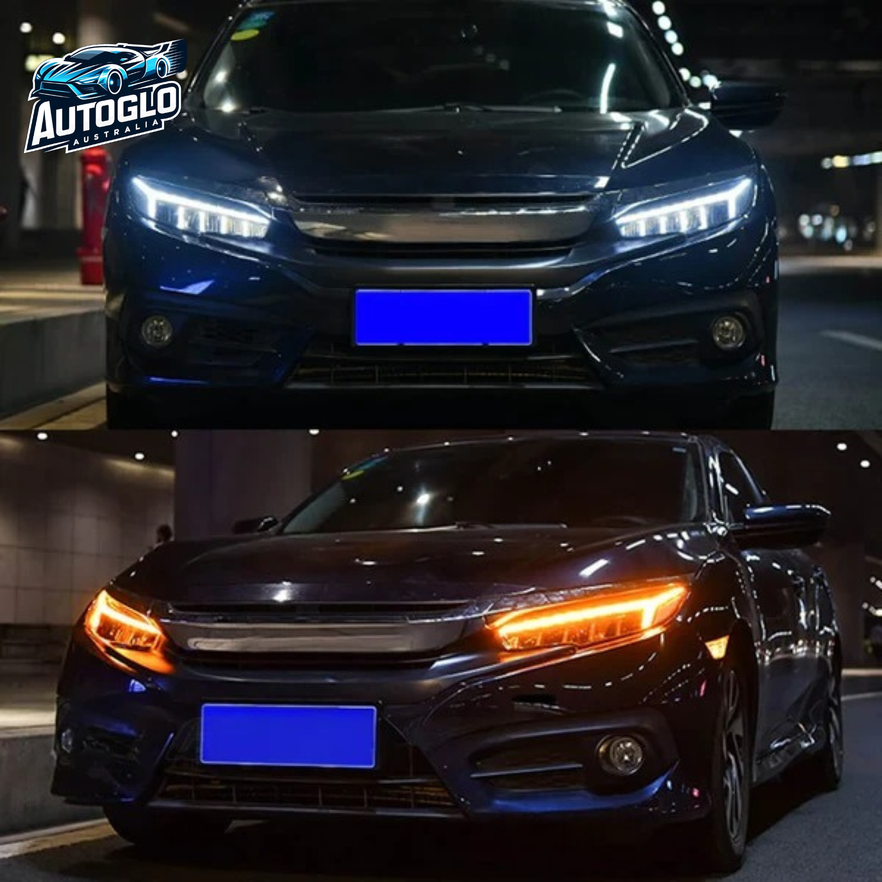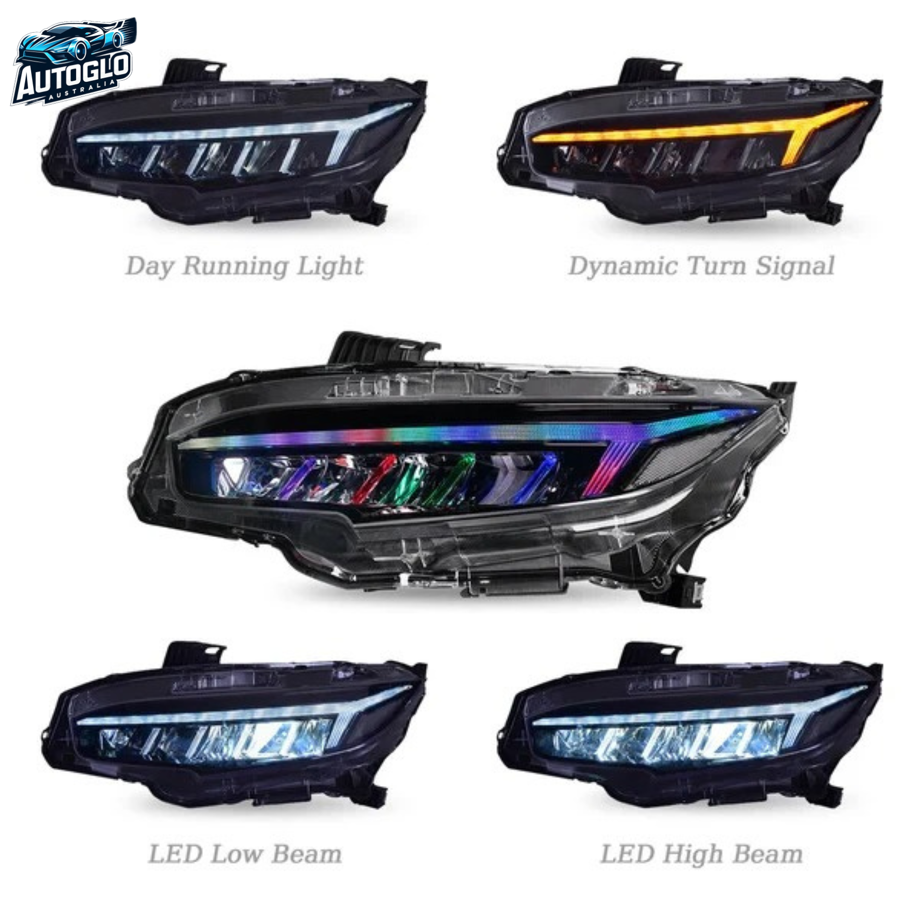 Autoglo Australia RGB LED Headlights for Honda Civic 10th Gen (2016–2021) – Sequential Turn Signals | RGB Control via App/Remote | Start-Up Animation DRL | Plug & Play
