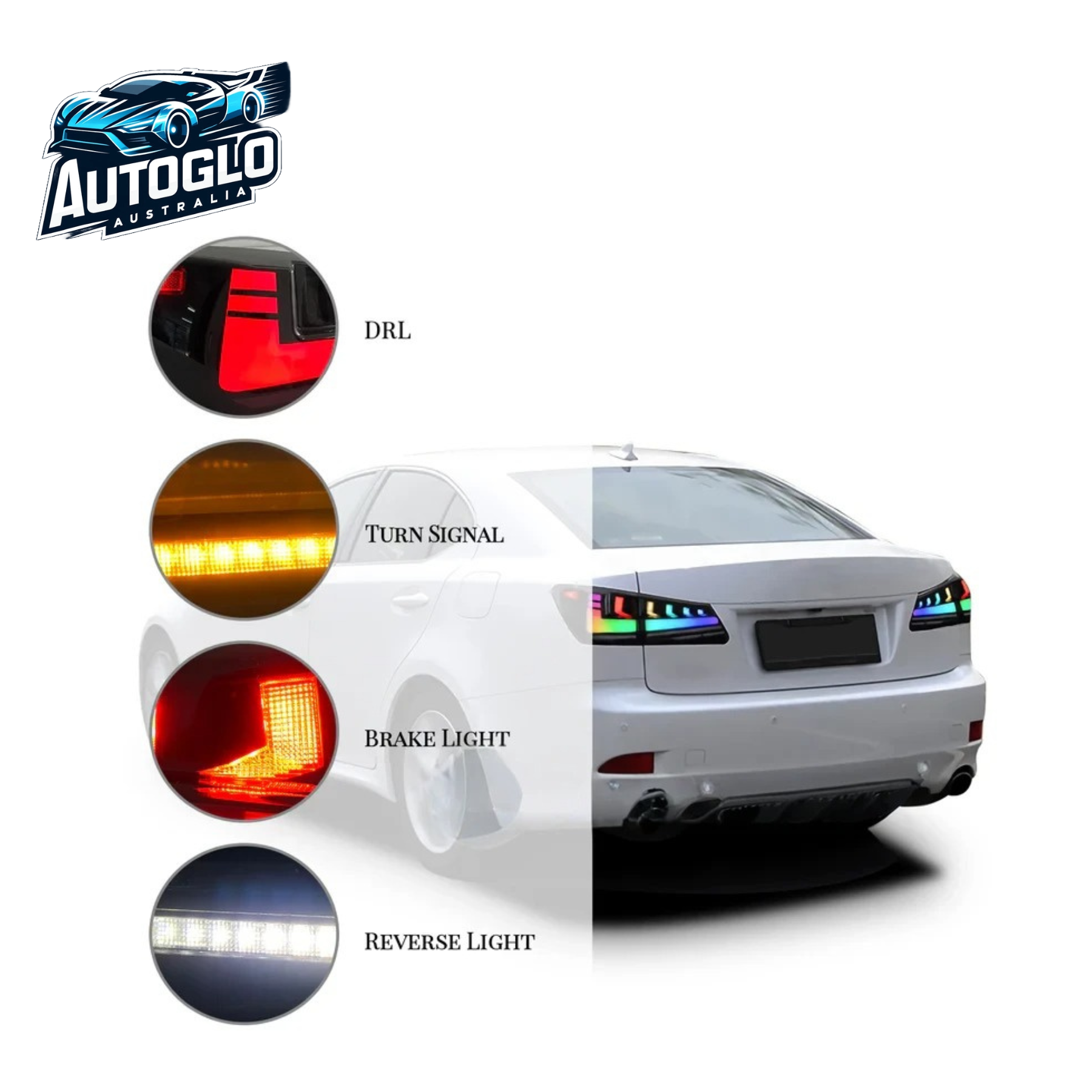 Autoglo Australia RGB LED Tail Lights for Lexus IS250 / IS350 / ISF (2006–2013) – RGB Color Control | OLED Technology | Sequential Turn Signals