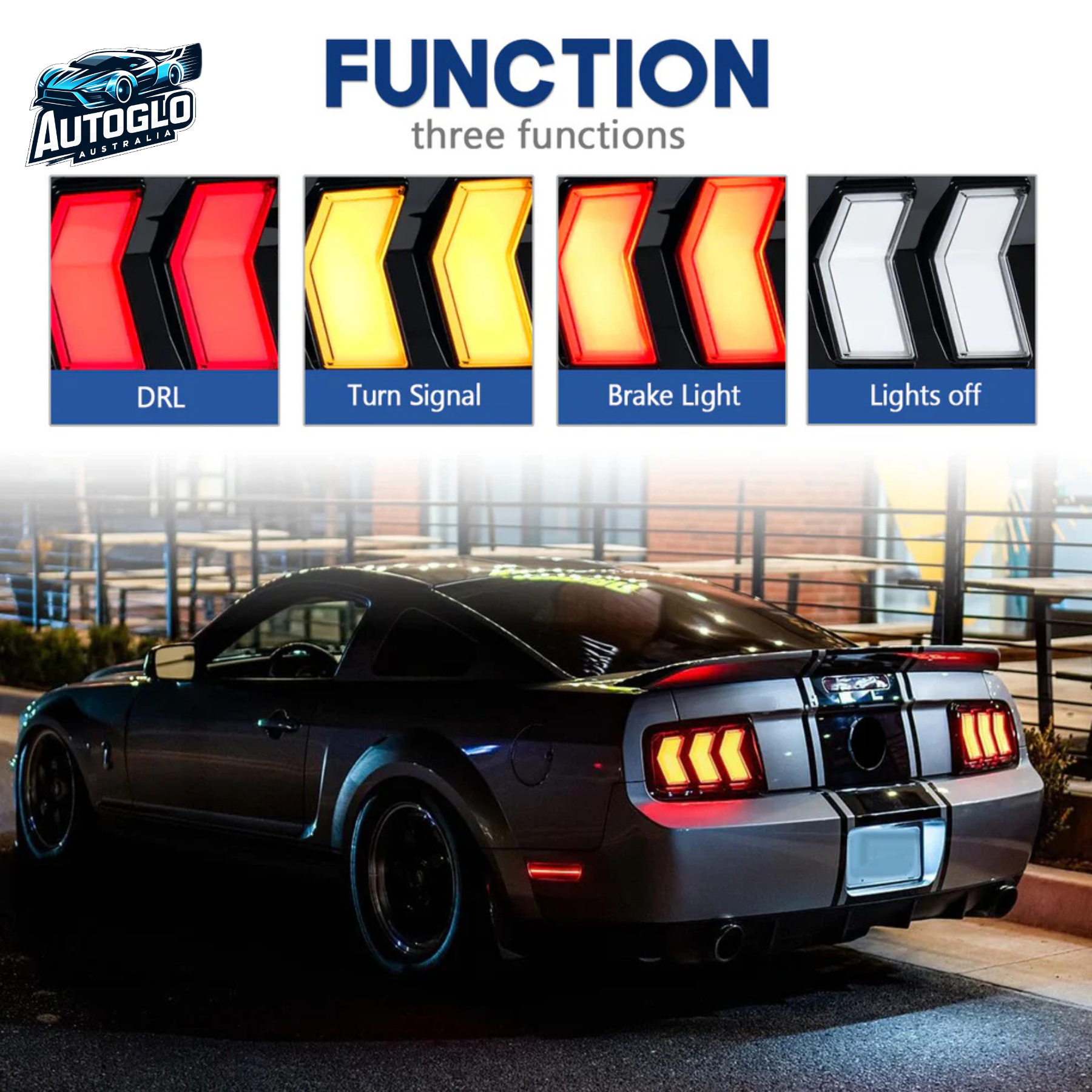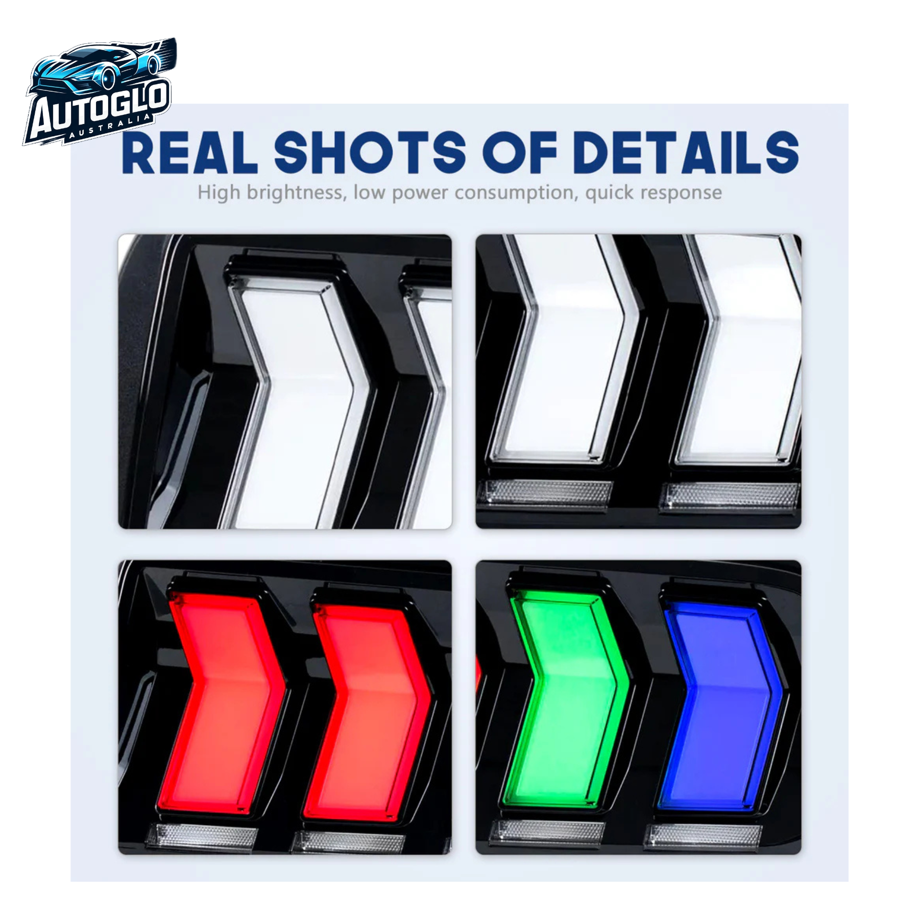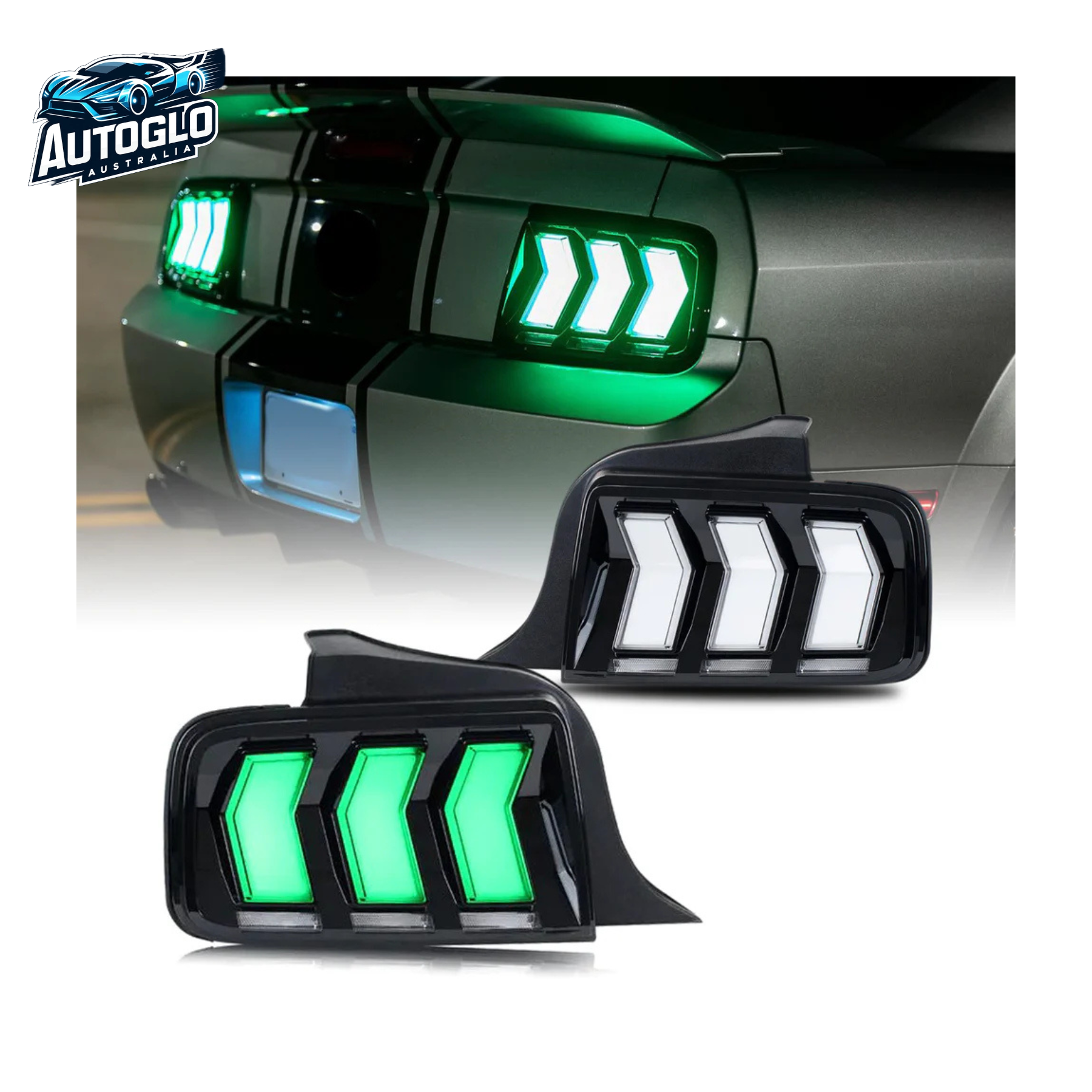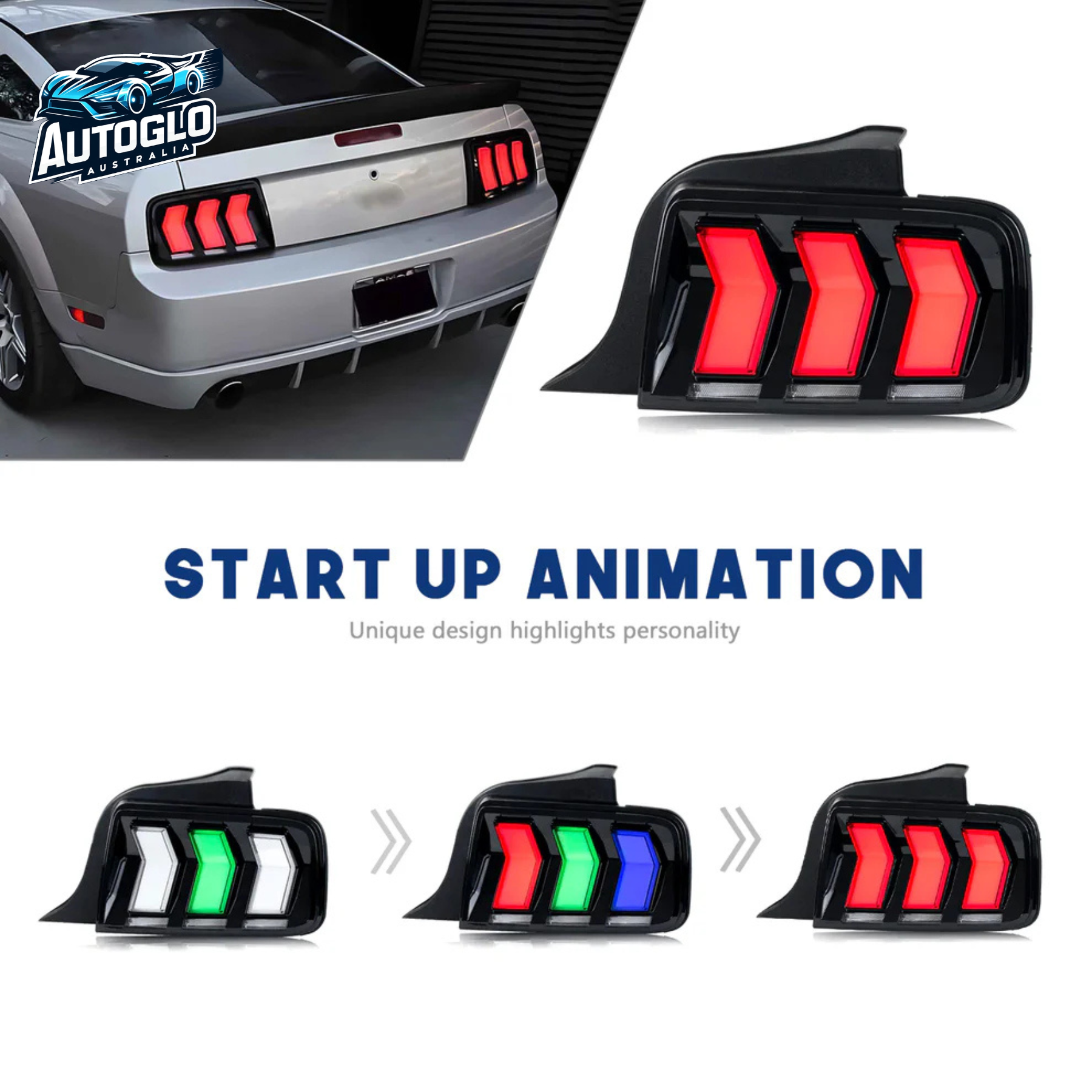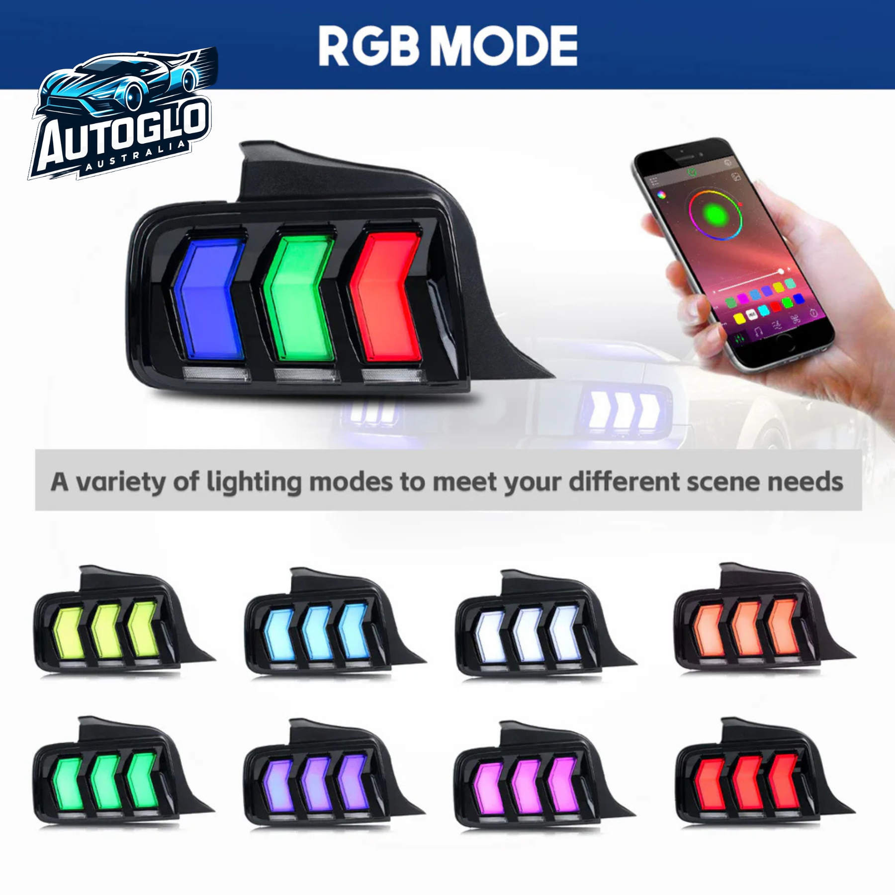 Autoglo Australia LED RGB Tail Lights for Ford Mustang 2005–2009 – App-Controlled Start-Up Animation & Sequential Rear Lights