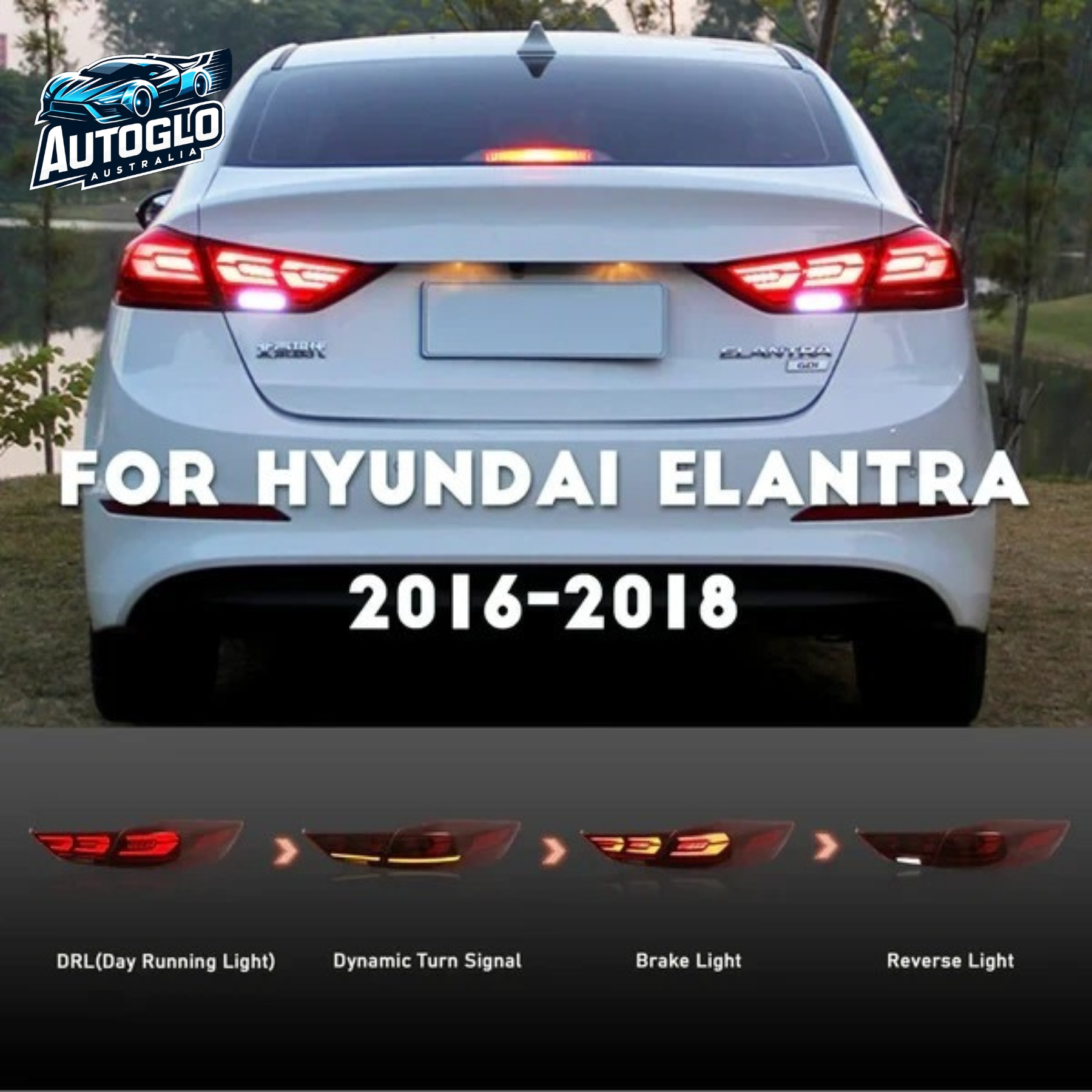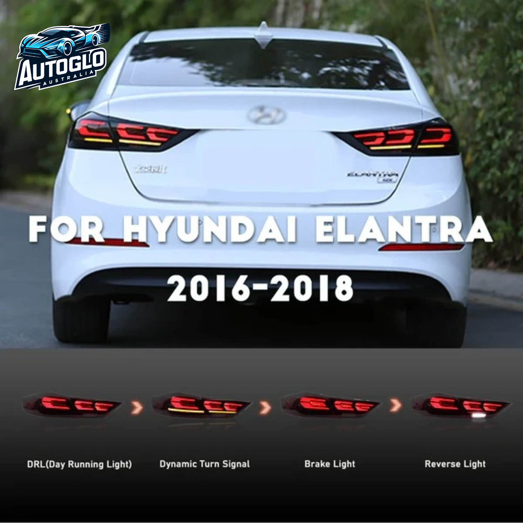 Autoglo Australia LED Tail Lights for Hyundai Elantra 2016–2018 – Start-Up Animation Sequential Rear Lights