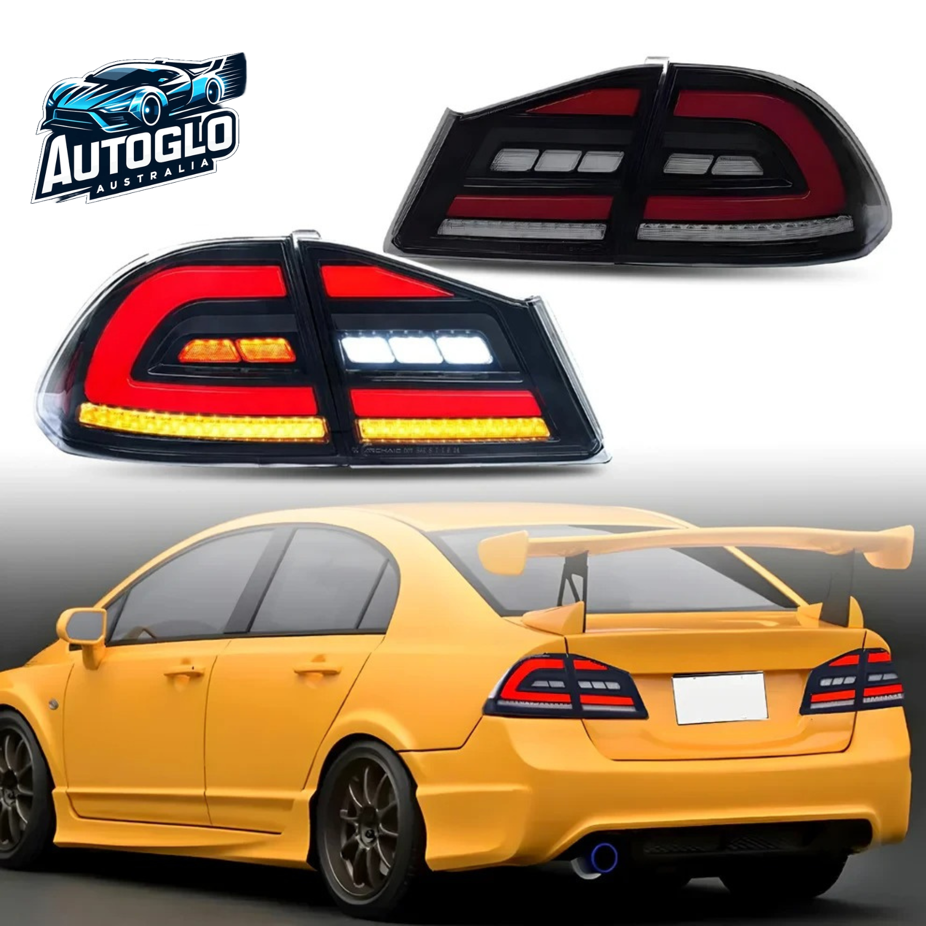 Autoglo Australia LED Tail Lights for Honda Civic Sedan / Type R (2006-2011 8th Gen FD2 FD3) – Dynamic Sequential & Start-Up Animation