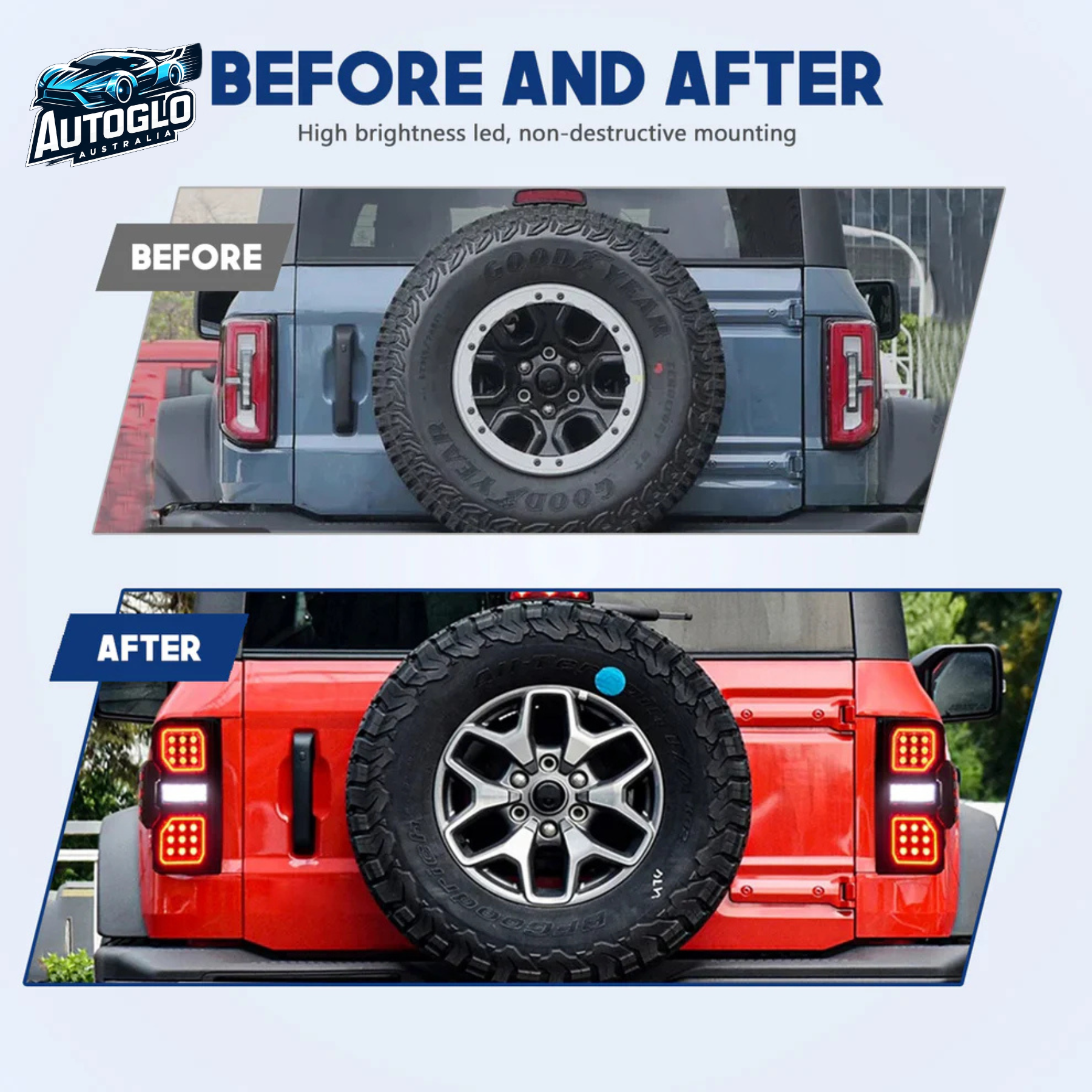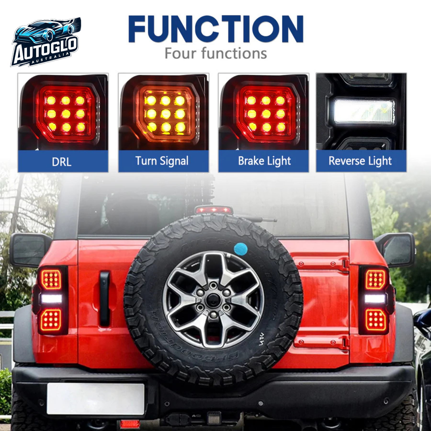 Autoglo Australia LED Tail Lights for Ford Bronco 6th Gen 2021–2024 – Sequential Turn Signals & Rugged Styling