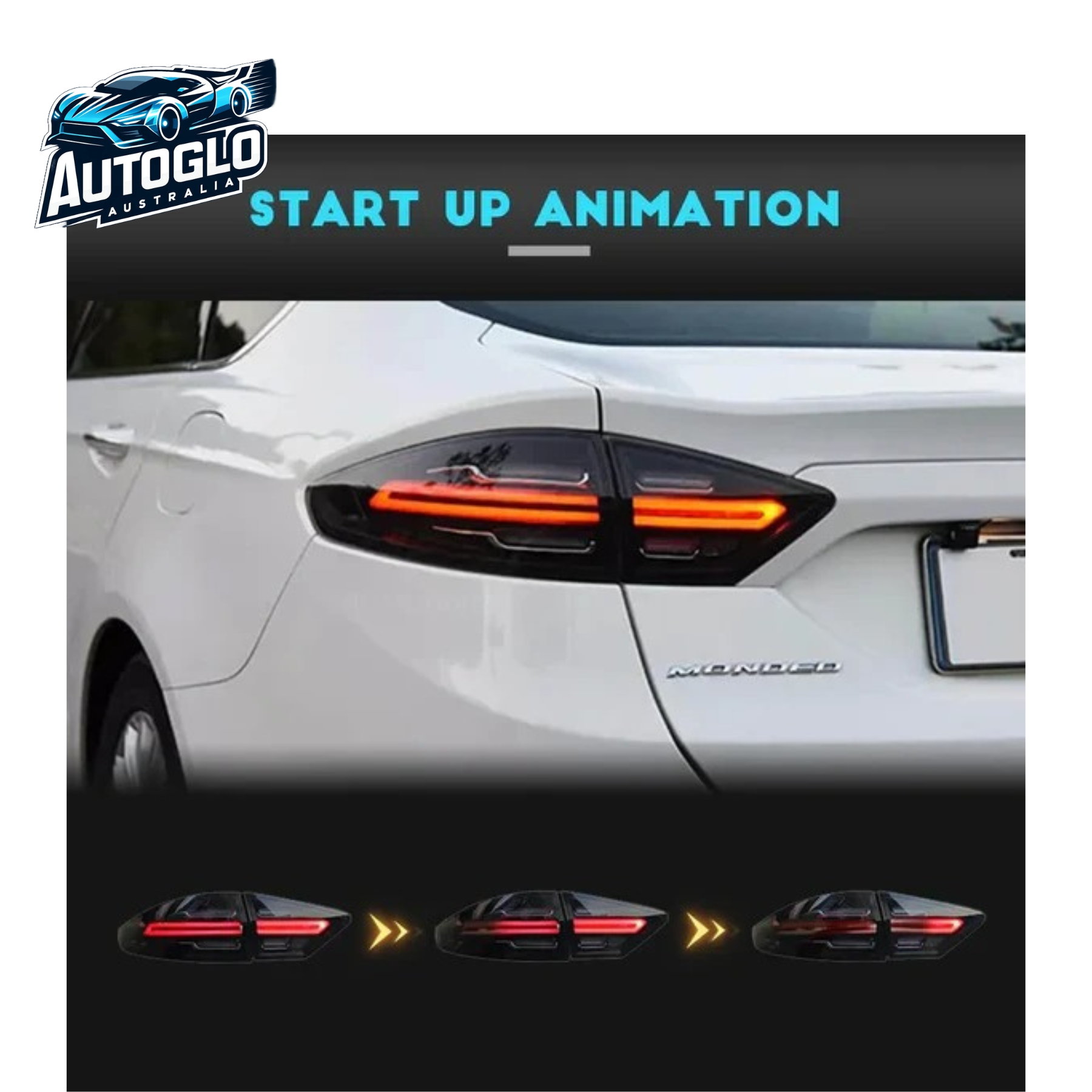 Autoglo Australia LED Tail Lights for Ford Fusion / Mondeo (2013–2016) – Dark Smoked Porsche-Style 4PCS Set with OLED & Sequential Indicators