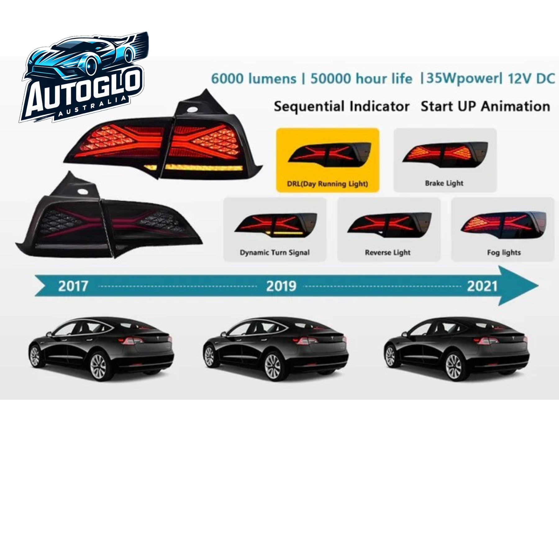 Autoglo Australia LED Tail Lights For Tesla Model 3 Model Y 2017 2018 2019 2020 2021 With Start Up Animation
