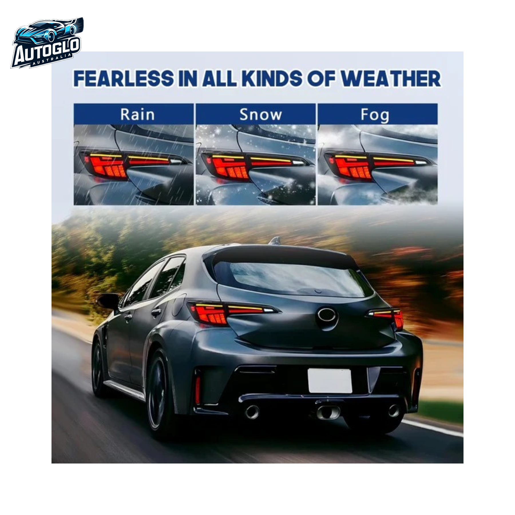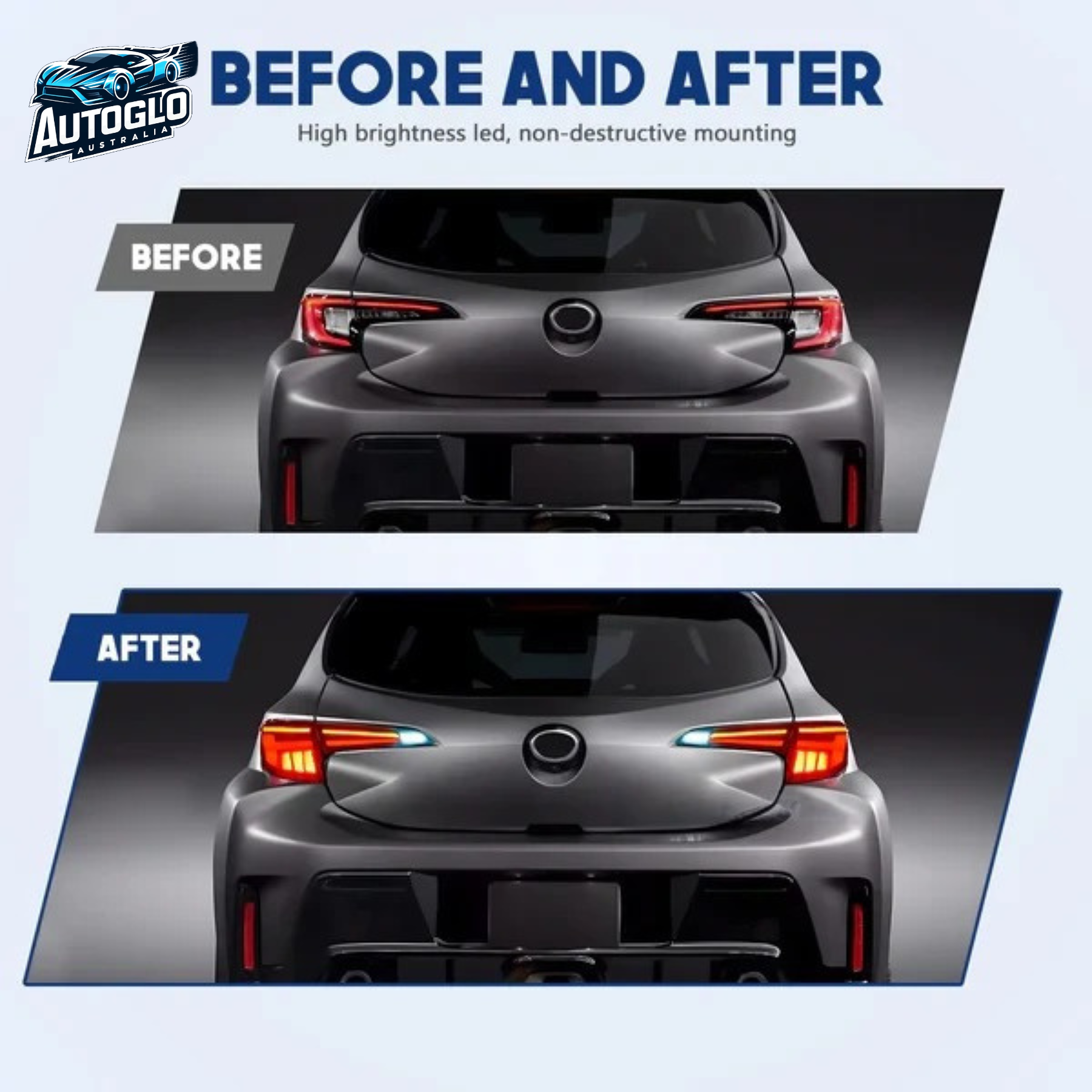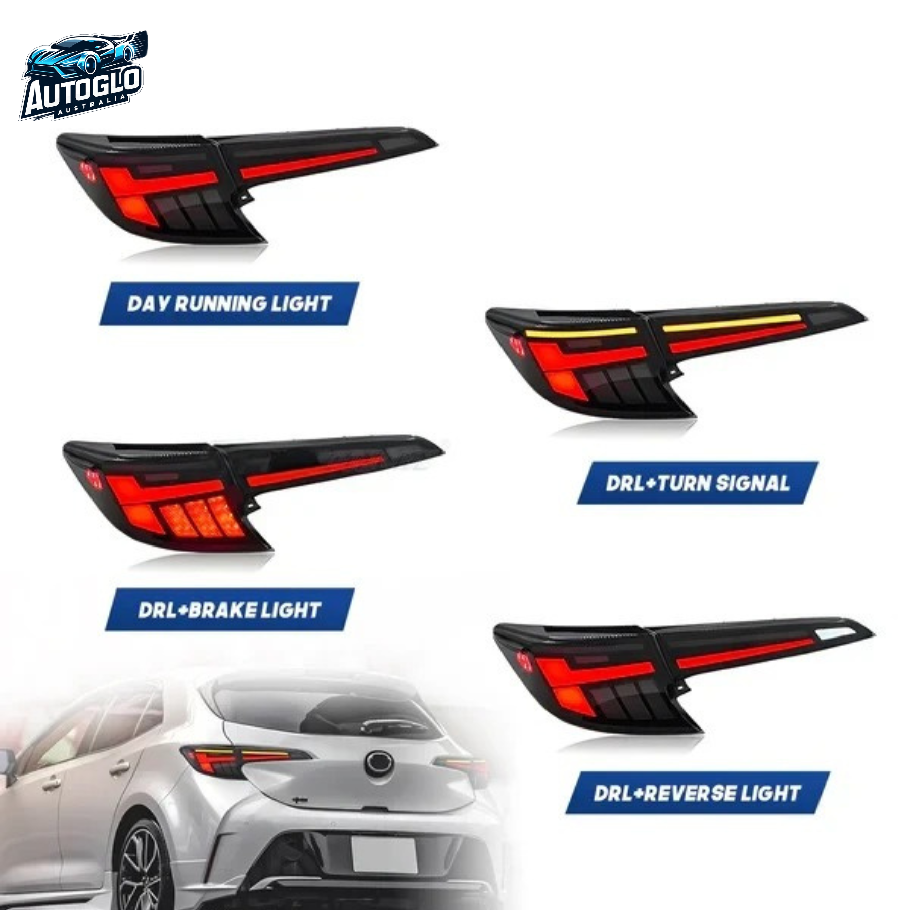 Autoglo Australia LED Tail Lights for Toyota Corolla Hatchback (2018–2023) – DRL Start-Up Animation | Sequential Indicators | Full LED Rear Lamps