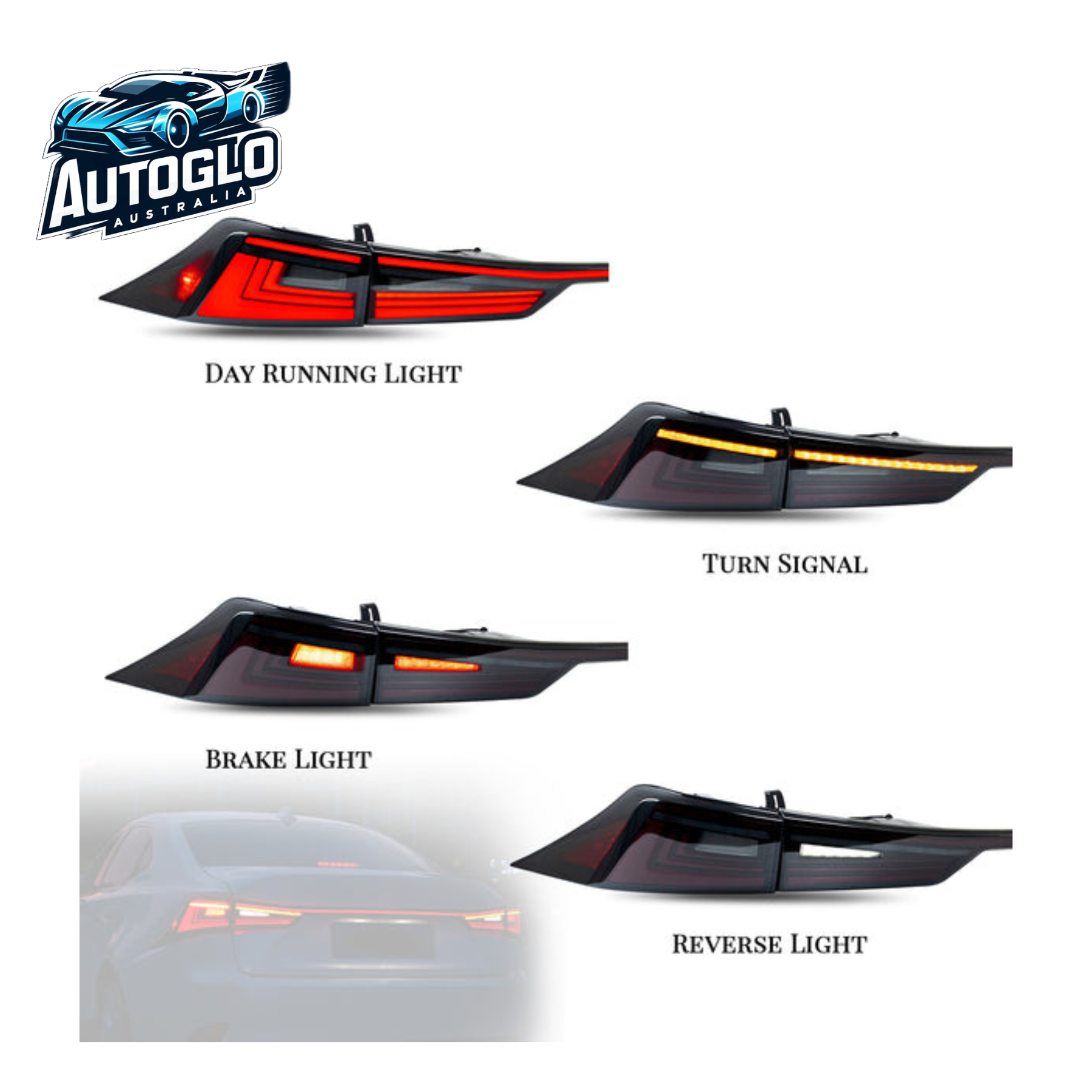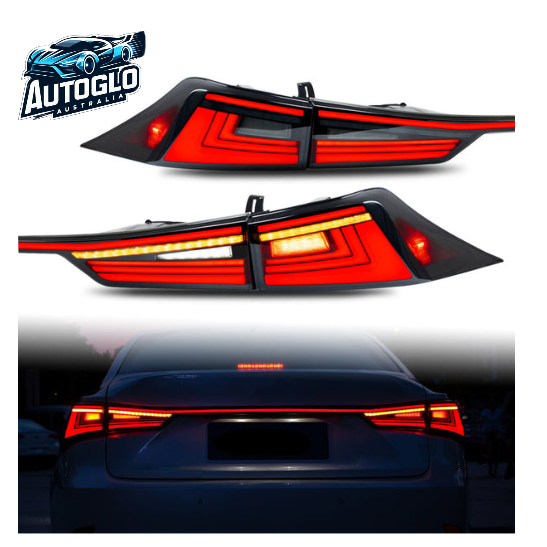 Autoglo Australia LED Tail Lights for Lexus IS250, IS350, 300h, F (2014–2020) – Sequential Turn Signals | Smoked Lens Rear Lamps | Plug & Play
