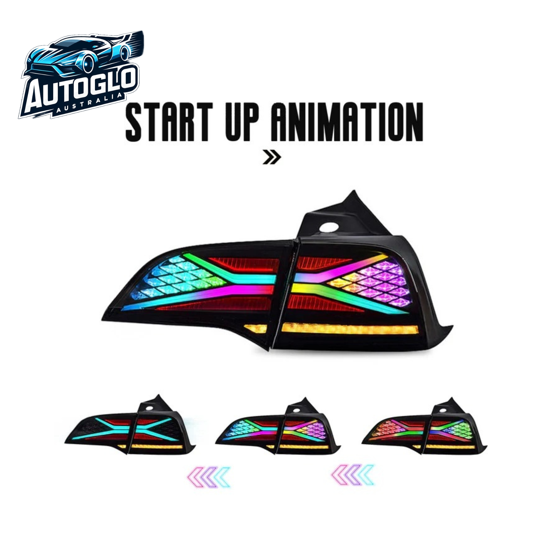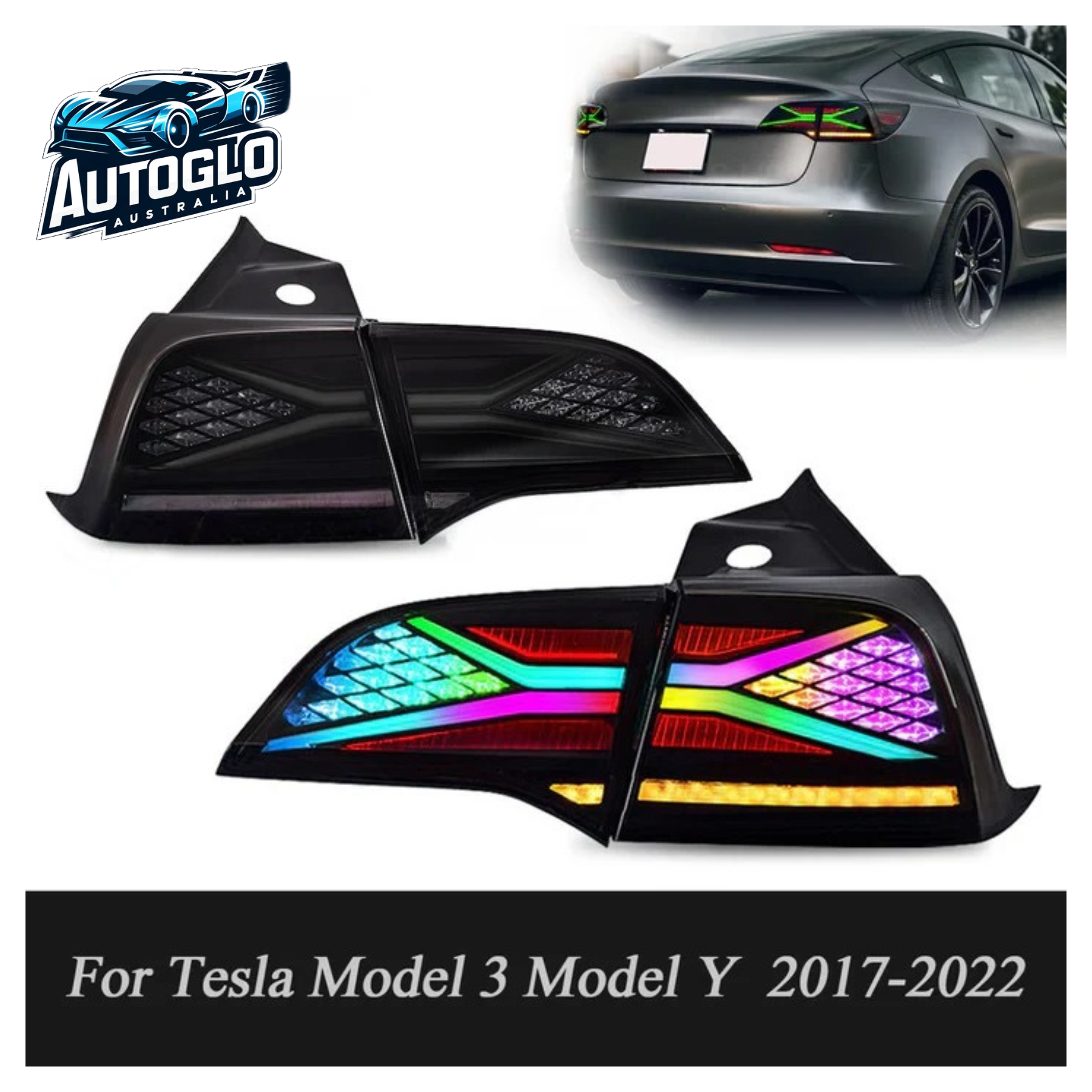 Autoglo Australia RGB LED Tail Lights for Tesla Model 3 & Model Y (2017–2021) – DRL Start-Up Animation & Sequential Signals