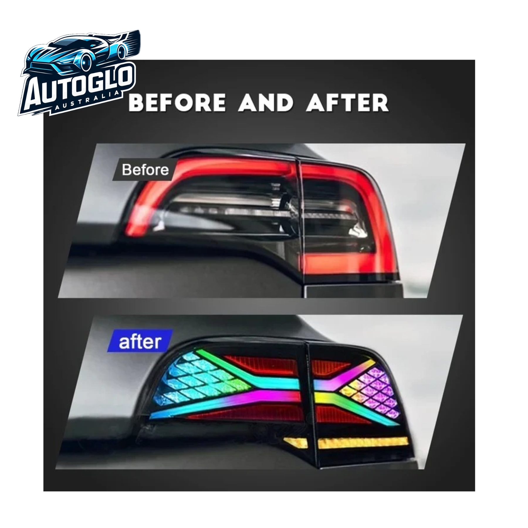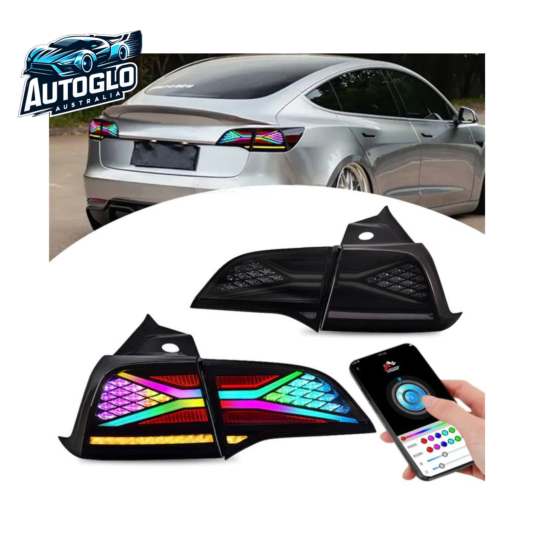Upgrade your Tesla Model 3 & Model Y (2017–2021) with Autoglo Australia RGB LED Tail Lights — the ultimate combination of style, safety, and customization.