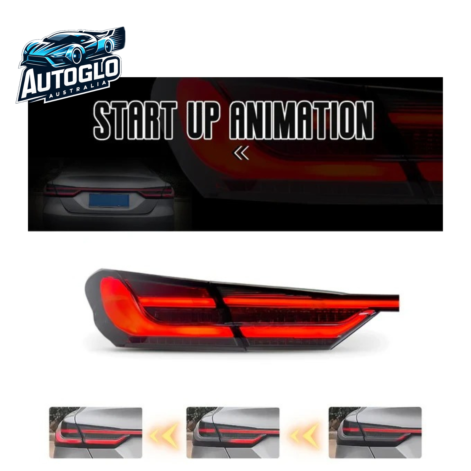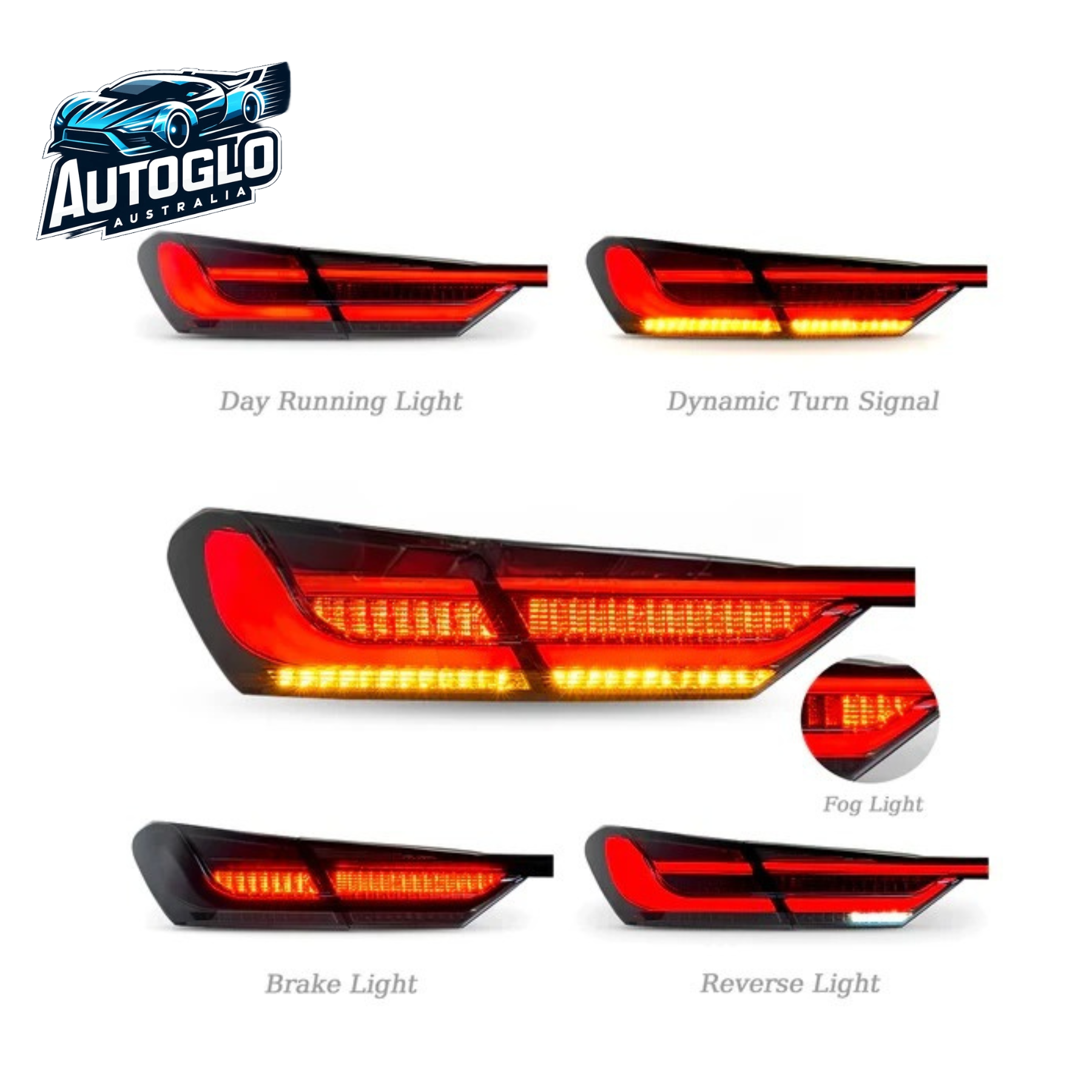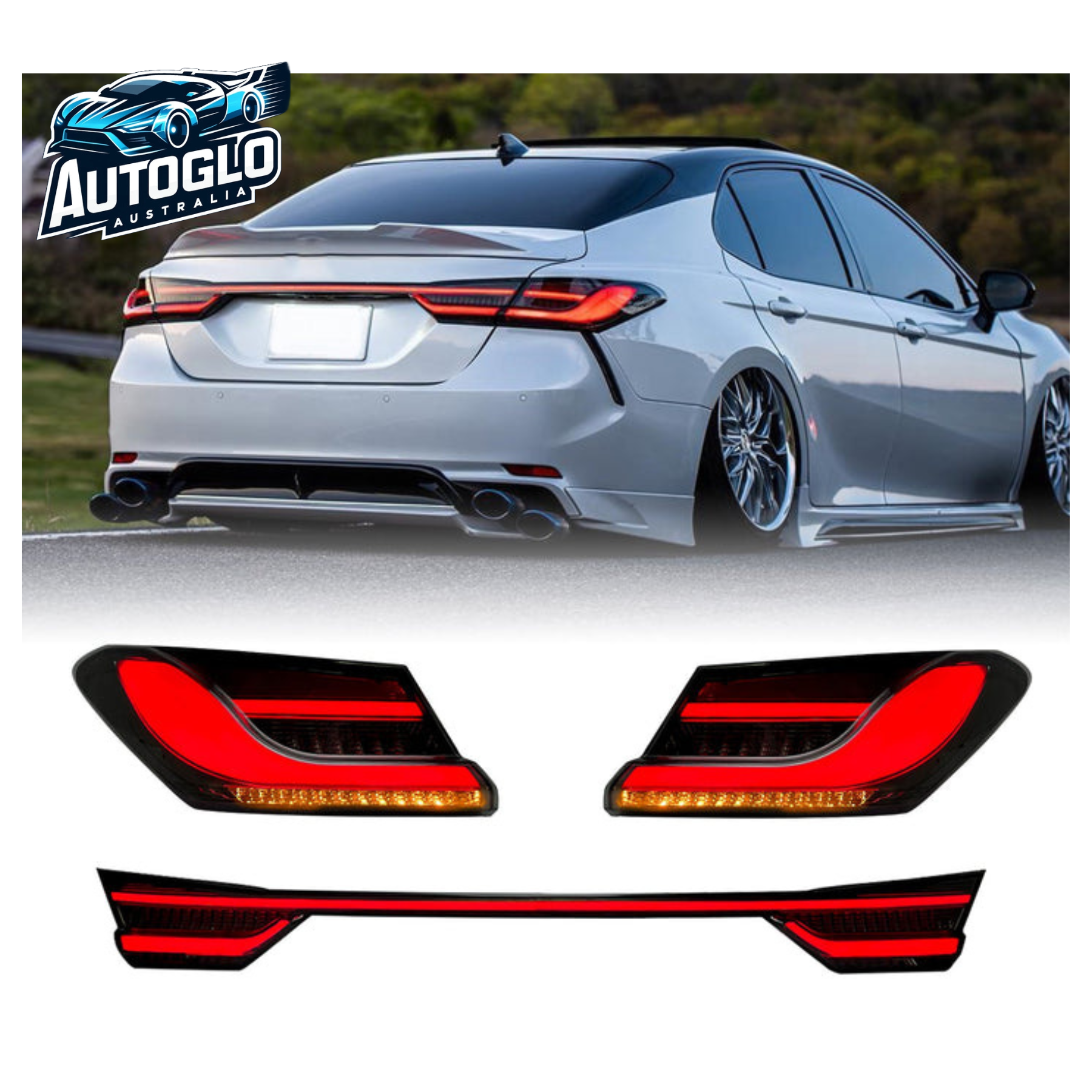 Autoglo Australia Smoked LED Tail Lights for Toyota Camry (2018–2021) – Black Strip Design | Sequential Indicators | Full LED Rear Lamps