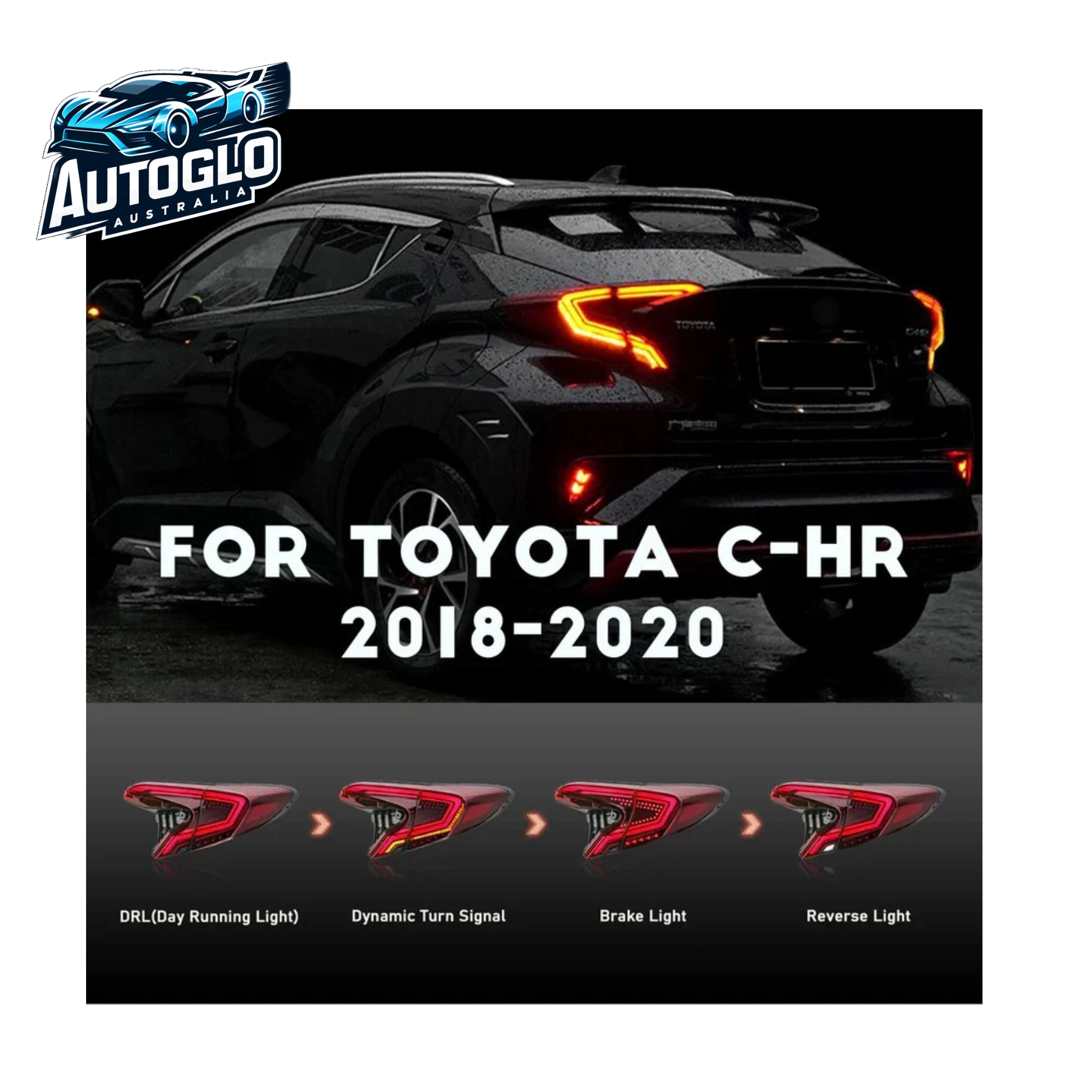 Autoglo Australia LED Taillights for Toyota C-HR 2018–2020 – OLED Technology with Sequential Turn Signals