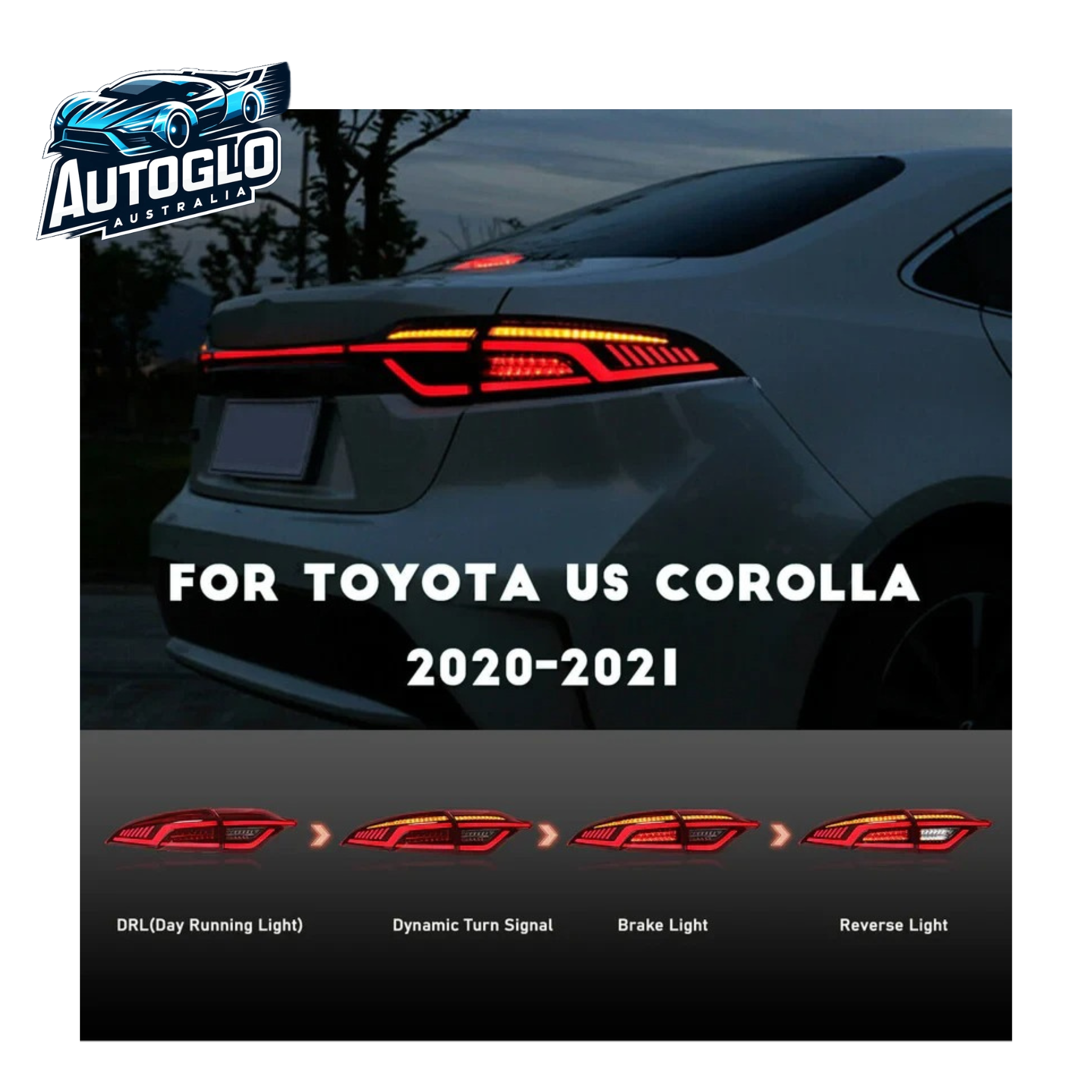 Autoglo Australia LED Tail Lights for Toyota US Corolla (2020–2024) – Sequential Turn Signals & OLED Lighting Upgrade