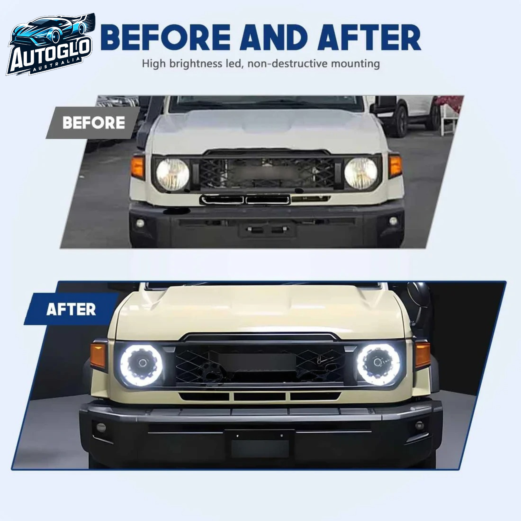 Transform your Toyota Land Cruiser AX with Autoglo Australia’s LED Headlights – where innovation meets rugged style and performance.