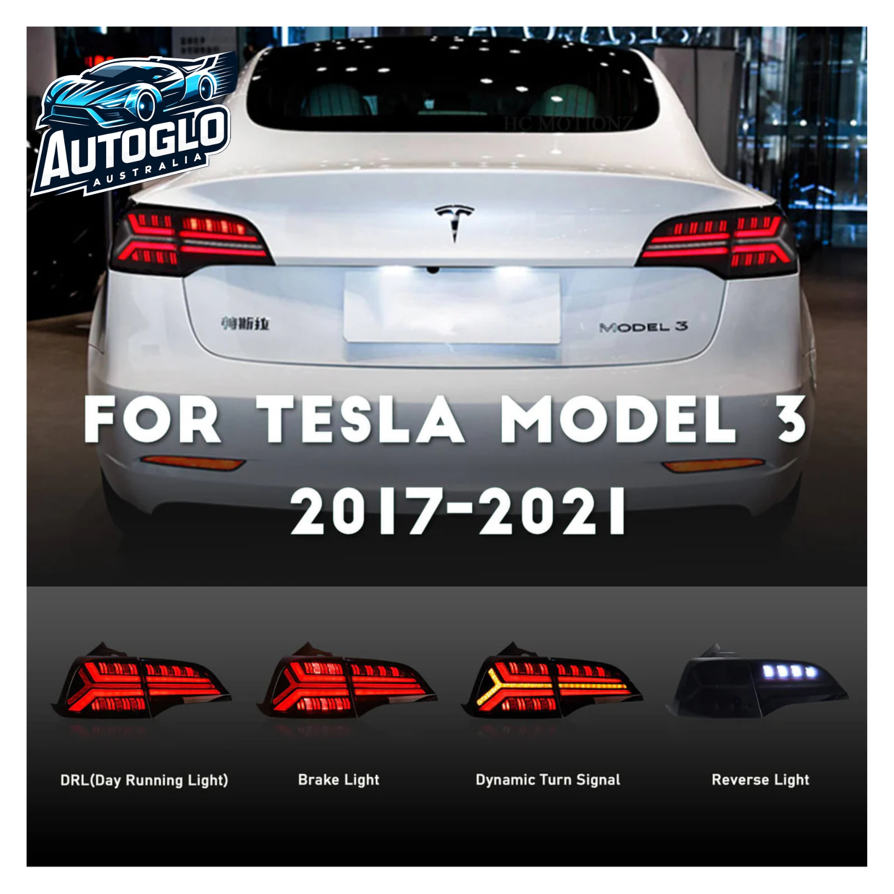 Autoglo Australia OLED LED Tail Lights for Tesla Model 3 (2017–2023) & Model Y (2020–2023) – Sequential Indicators & Futuristic Styling