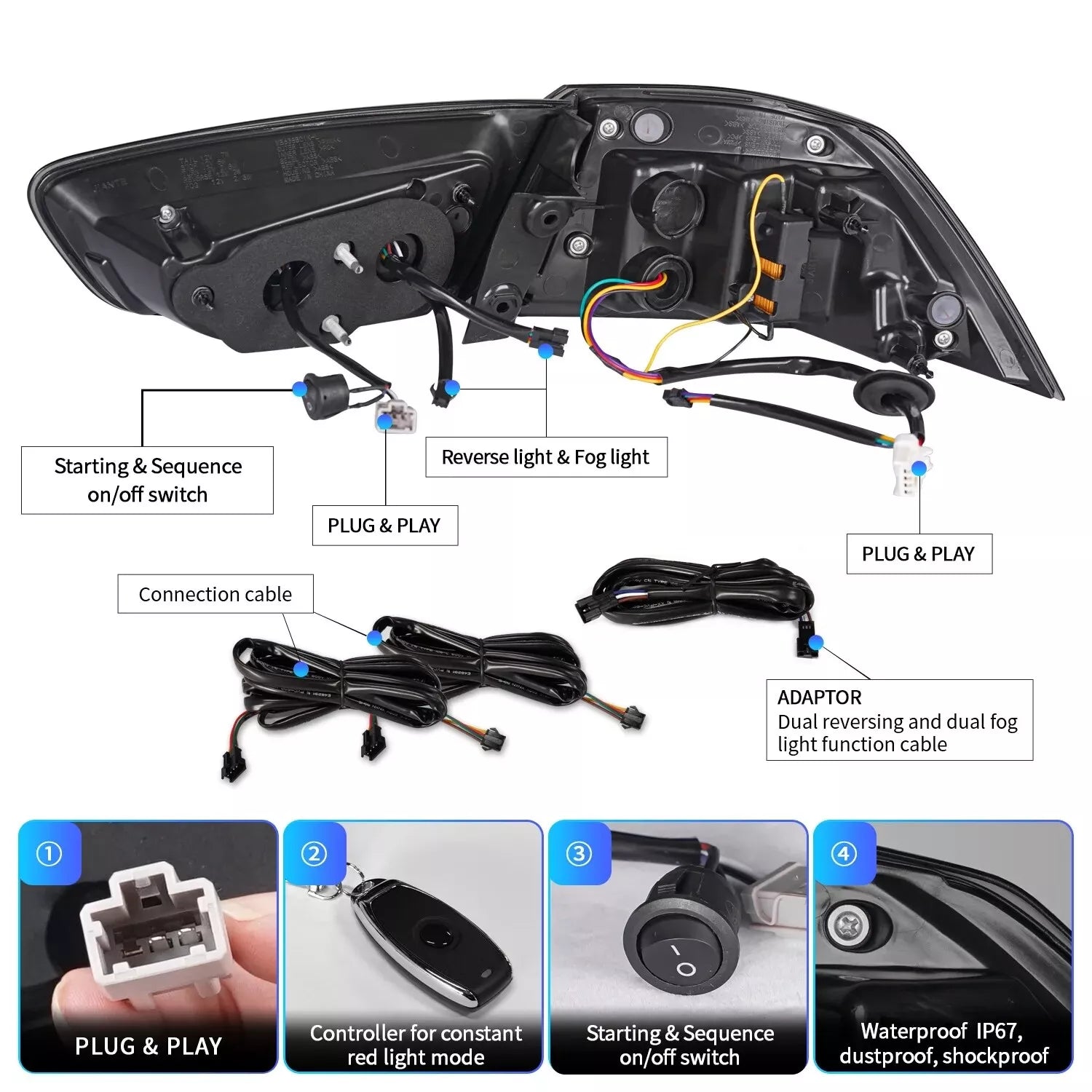 Plug & play design for easy self-installation. Direct replacement for the original tail lights.
