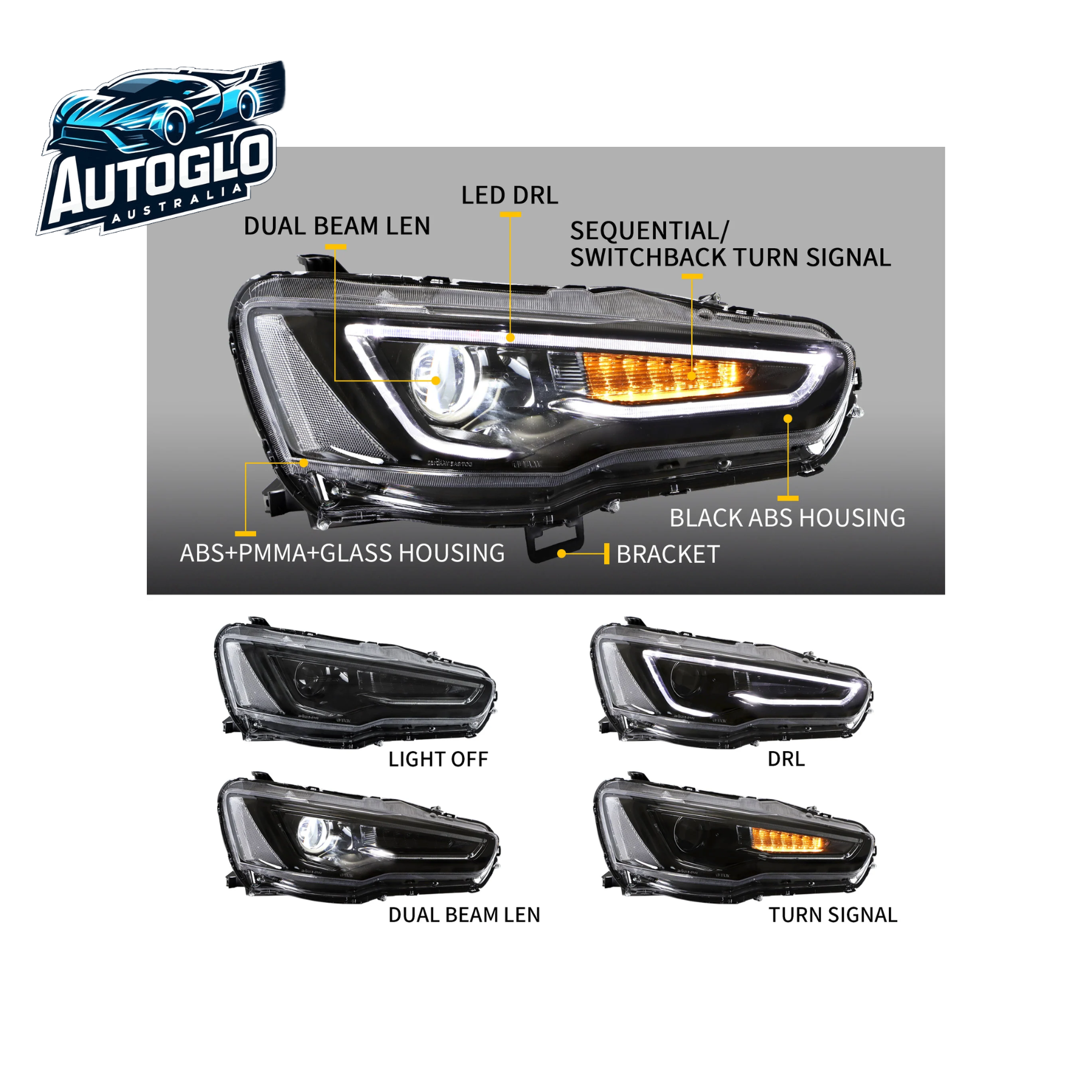 VLAND Dual Beam Projector Headlights and Taillights for Mitsubishi Lancer 2008-2018