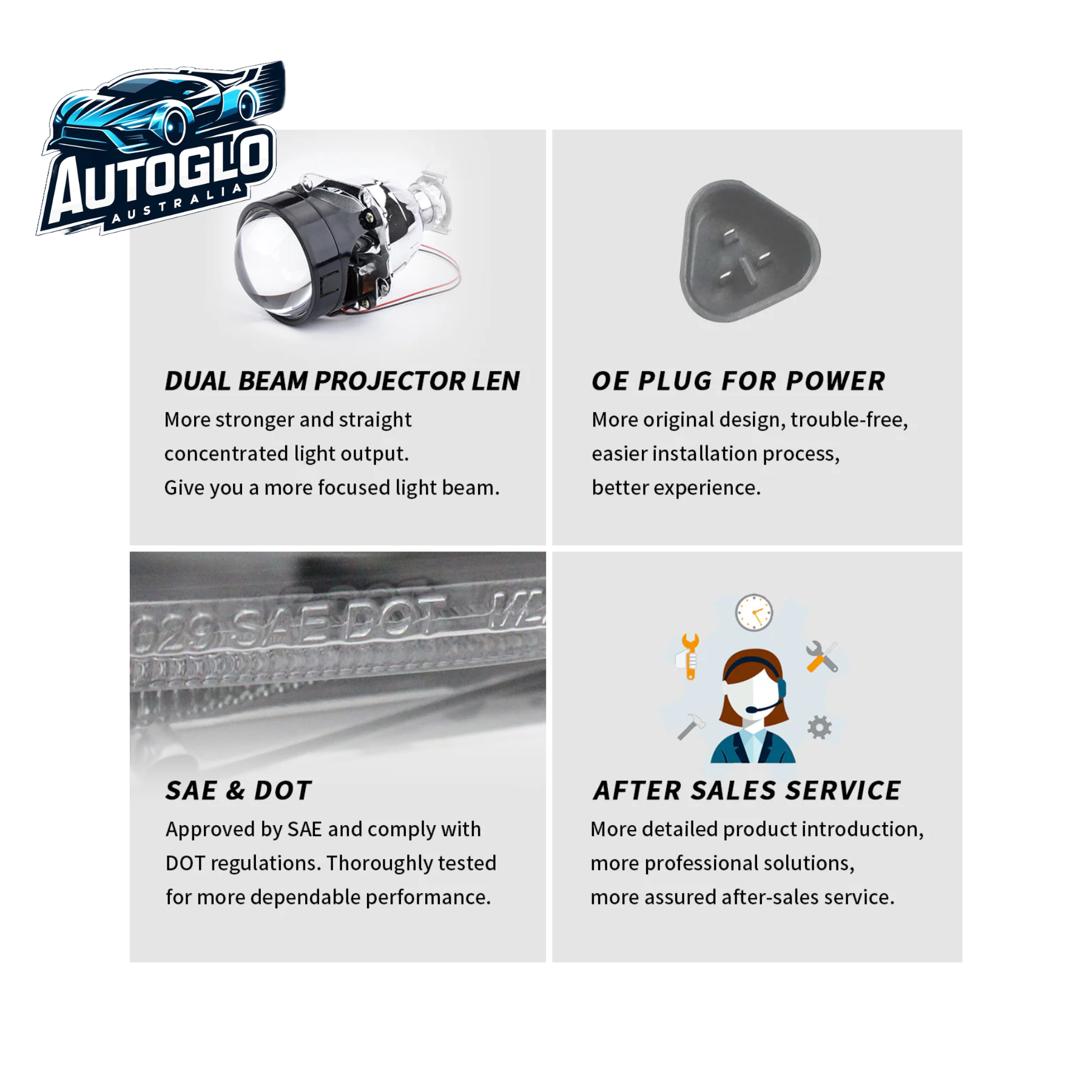 - Low/High Beam: Full LED, no bulbs required
