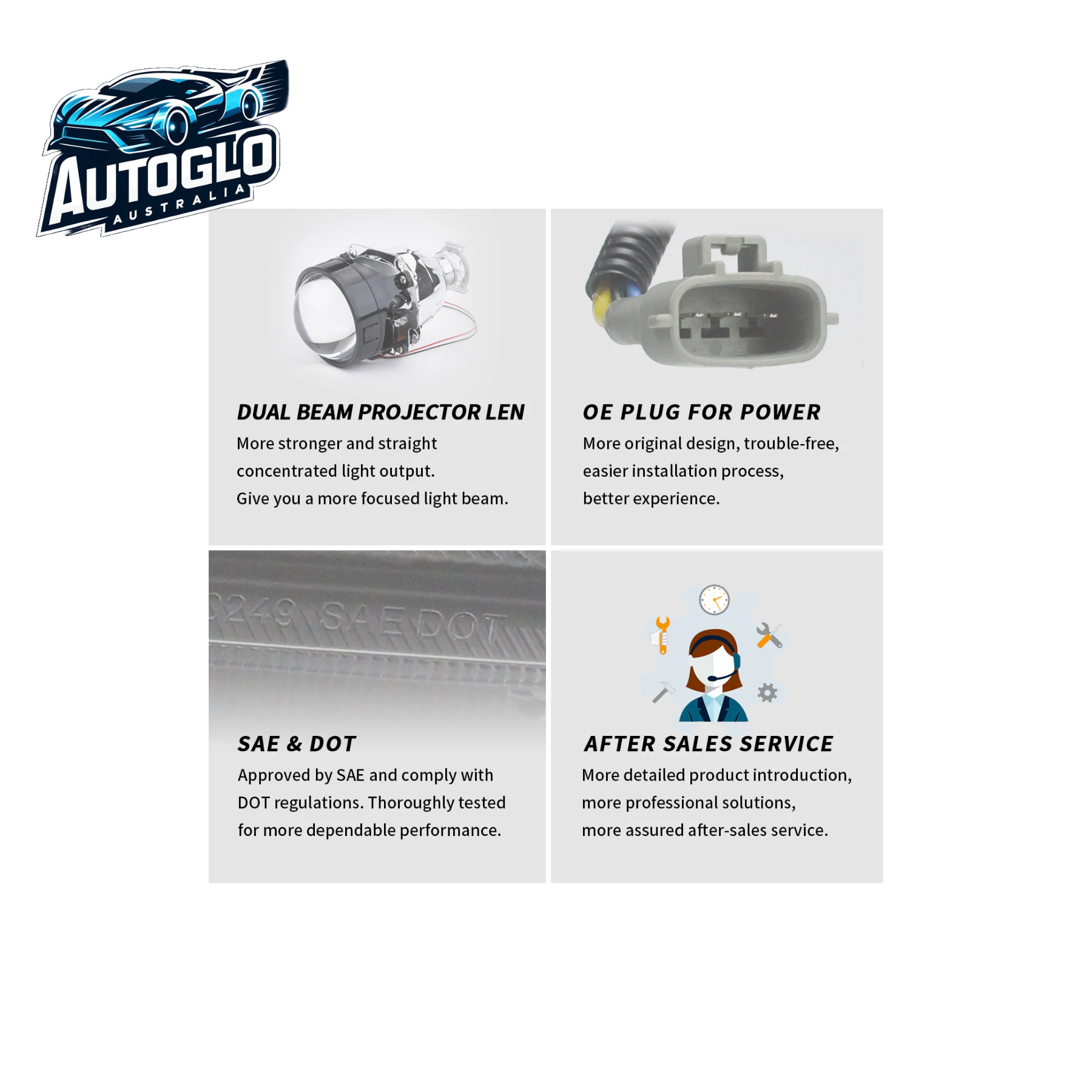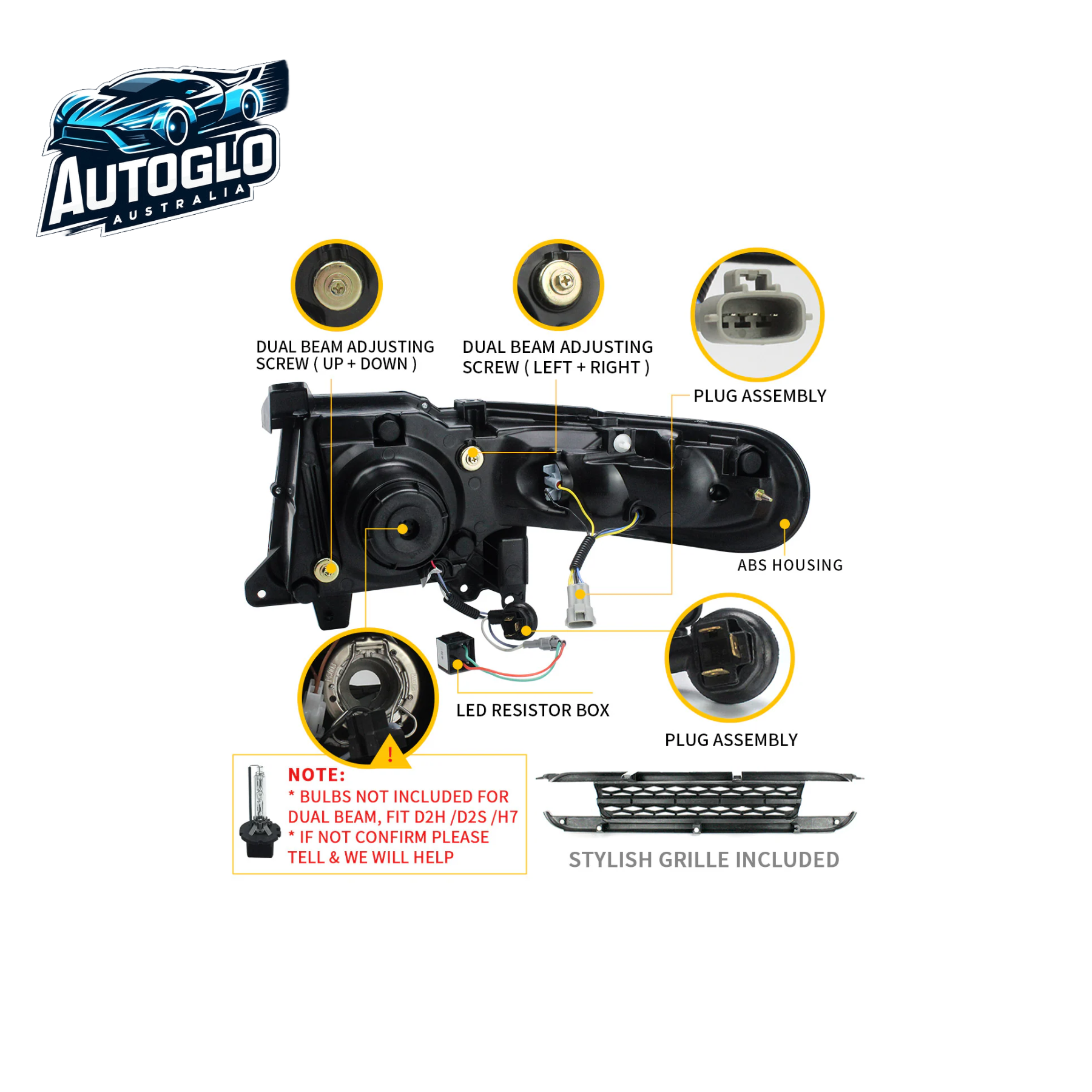 - Low/High Beam: D2H HID / D2S LED Bulbs Recommended (Bulbs Not Included)