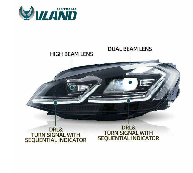 Upgrade your Volkswagen MK7.5 (2017-2020) with VLAND LED Projector Headlights to elevate both style and performance. Enjoy enhanced safety, superior LED technology, and a sleek new look.