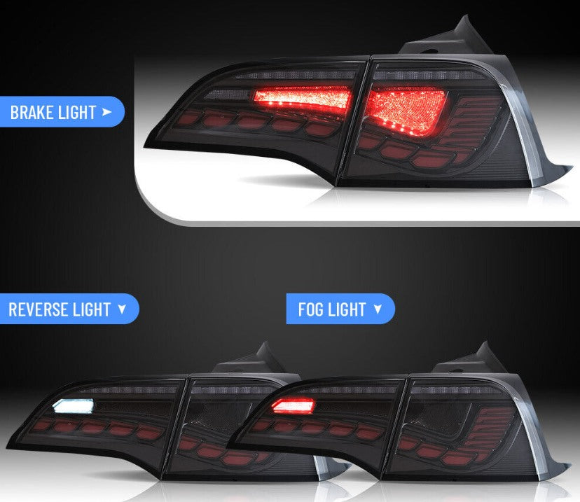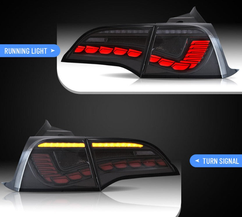 Full LED Tail Lights with Sequential Turn Signal for Tesla Model 3 (2017–2023) & Model Y (2021–2023)