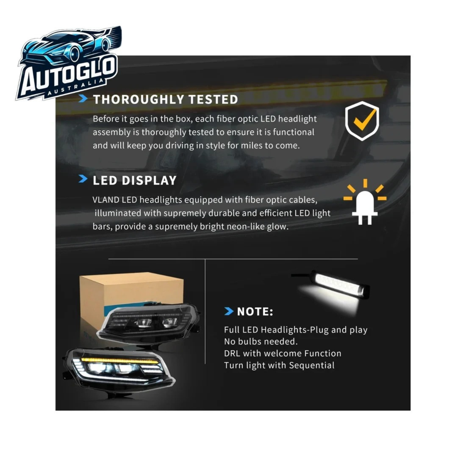 VLAND Projector Headlights For Chevrolet / Chevy Camaro LT SS RS ZL LS 2016-2018