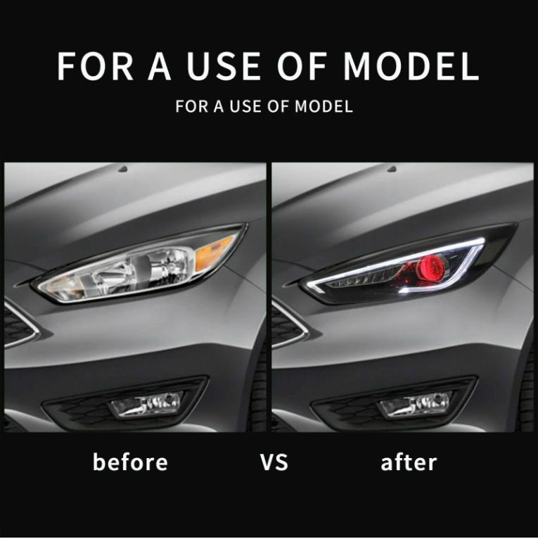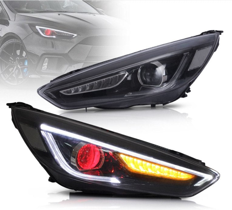 VLAND Red Demon Eyes LED Headlights for Ford Focus 2015-2018 Sequential Signals