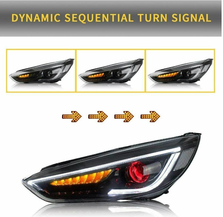 Transform the front-end look of your Ford Focus with these modern LED projector headlights. The dynamic sequential indicators, crisp white DRLs, and red demon eyes offer both a unique visual style and increased road visibility. All lighting functions are significantly brighter than standard OEM lights, improving safety in all driving conditions.