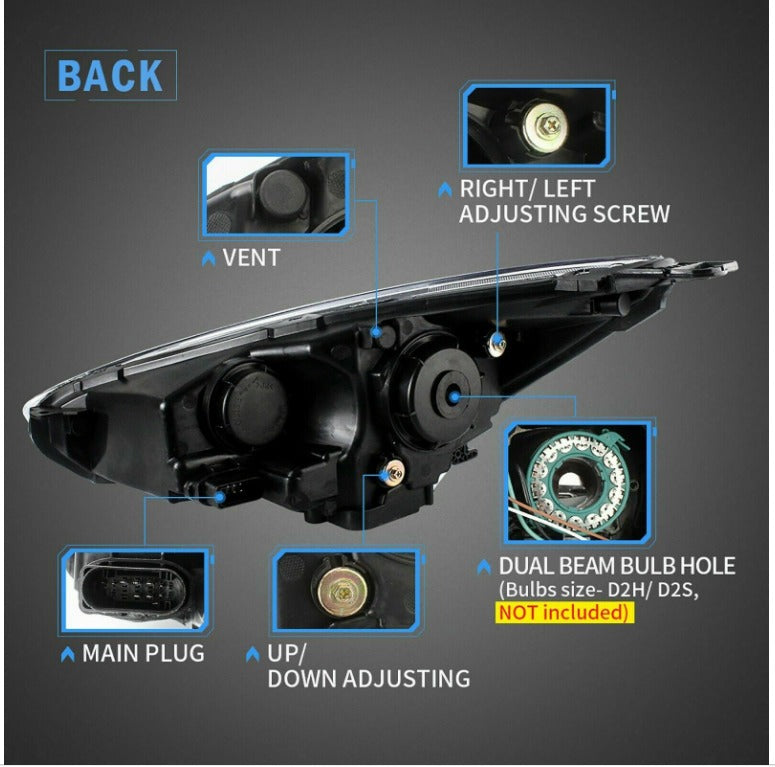 LED Projector Headlights for Ford Focus ST/RS/SE/SEL/Titanium/S (2015–2018, Mark III Facelift)