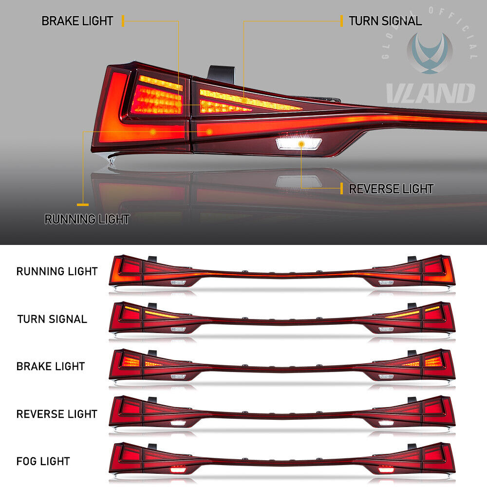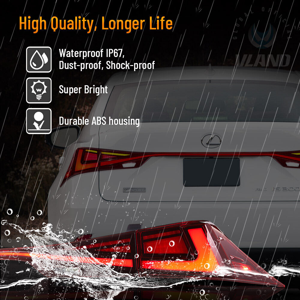 Performance: Our VLAND LED taillights not only give your Lexus a new, stylish look but also significantly enhance safety and visibility. With advanced LED technology, all lighting positions—brake, running, reverse, fog, and turn signals—are much brighter than standard lights, ensuring you are seen more clearly on the road.