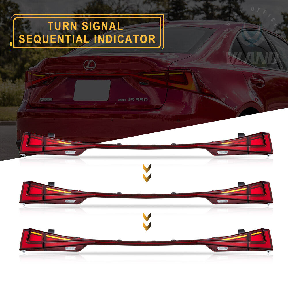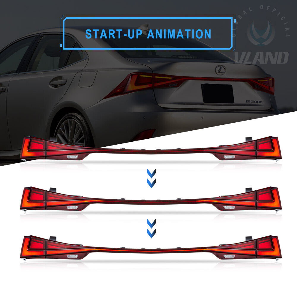 VLAND Red LED Tail Lights 2014-19 Lexus IS250 300h 350F Start Animation w/ sequential Indicators