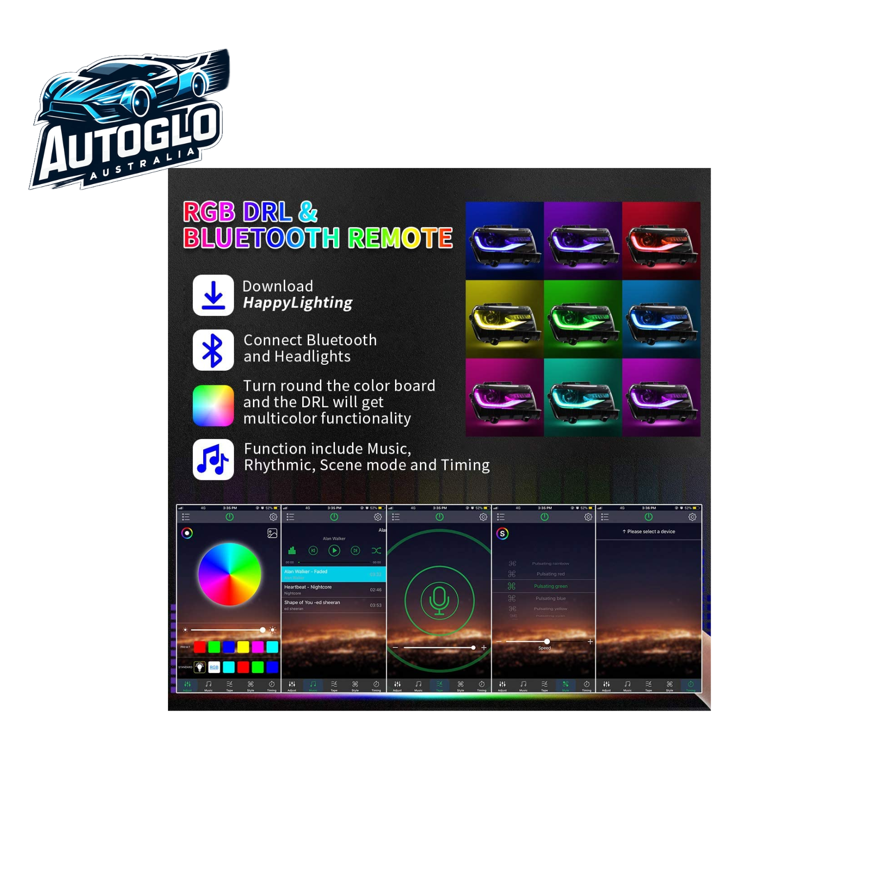 Vland RGB Dual Beam Headlights For Chevy Camaro 2014 2015 With Amber Sequential, Multicolor DRL colors
