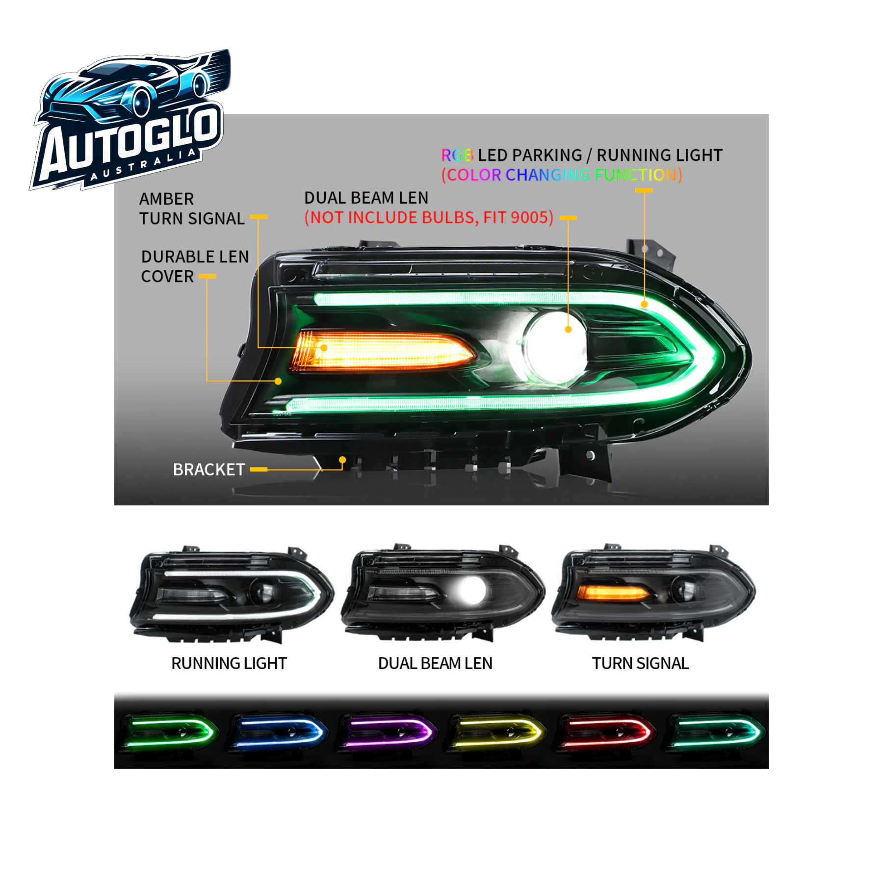 VLAND RGB Projector Headlights for Dodge Charger 2015-UP